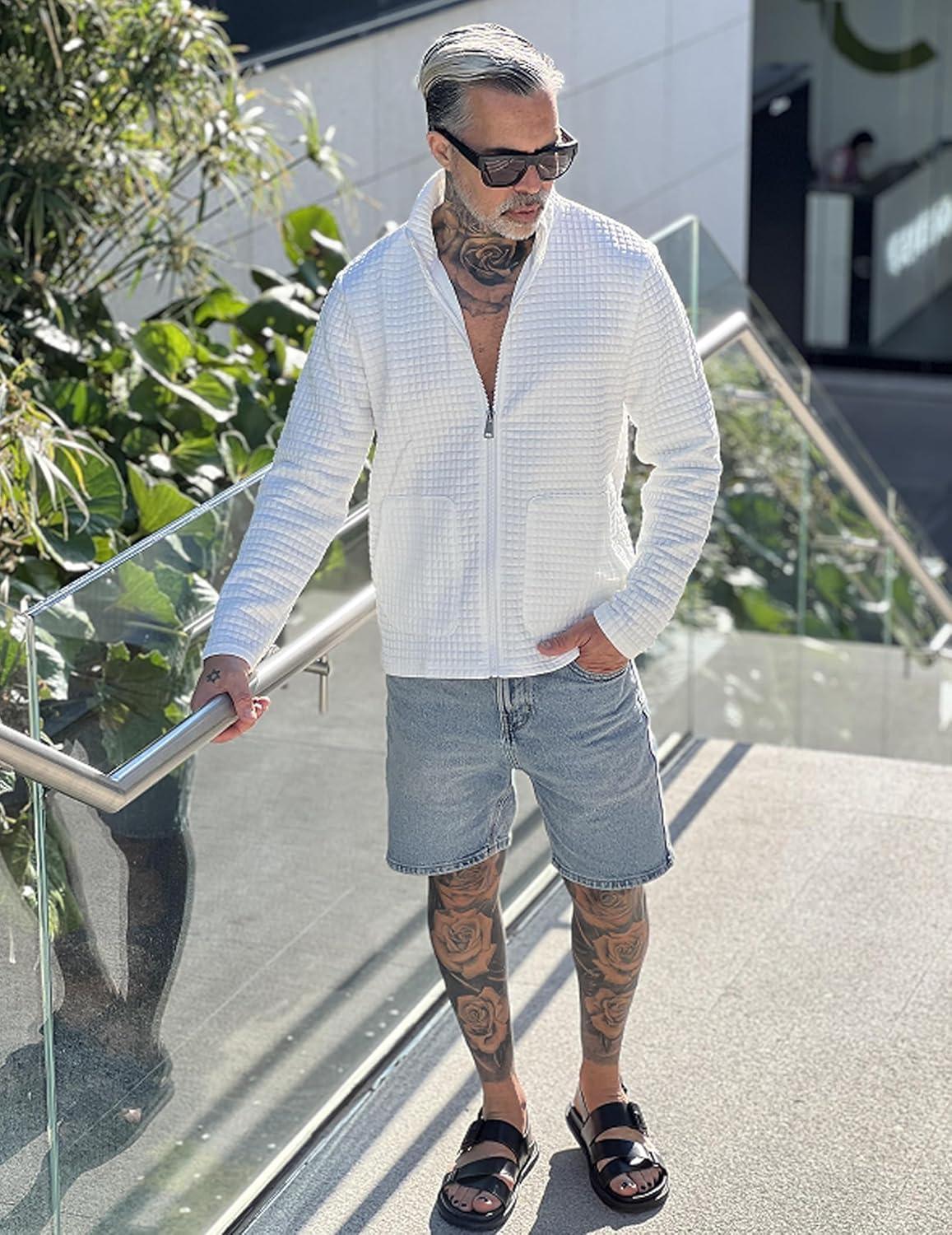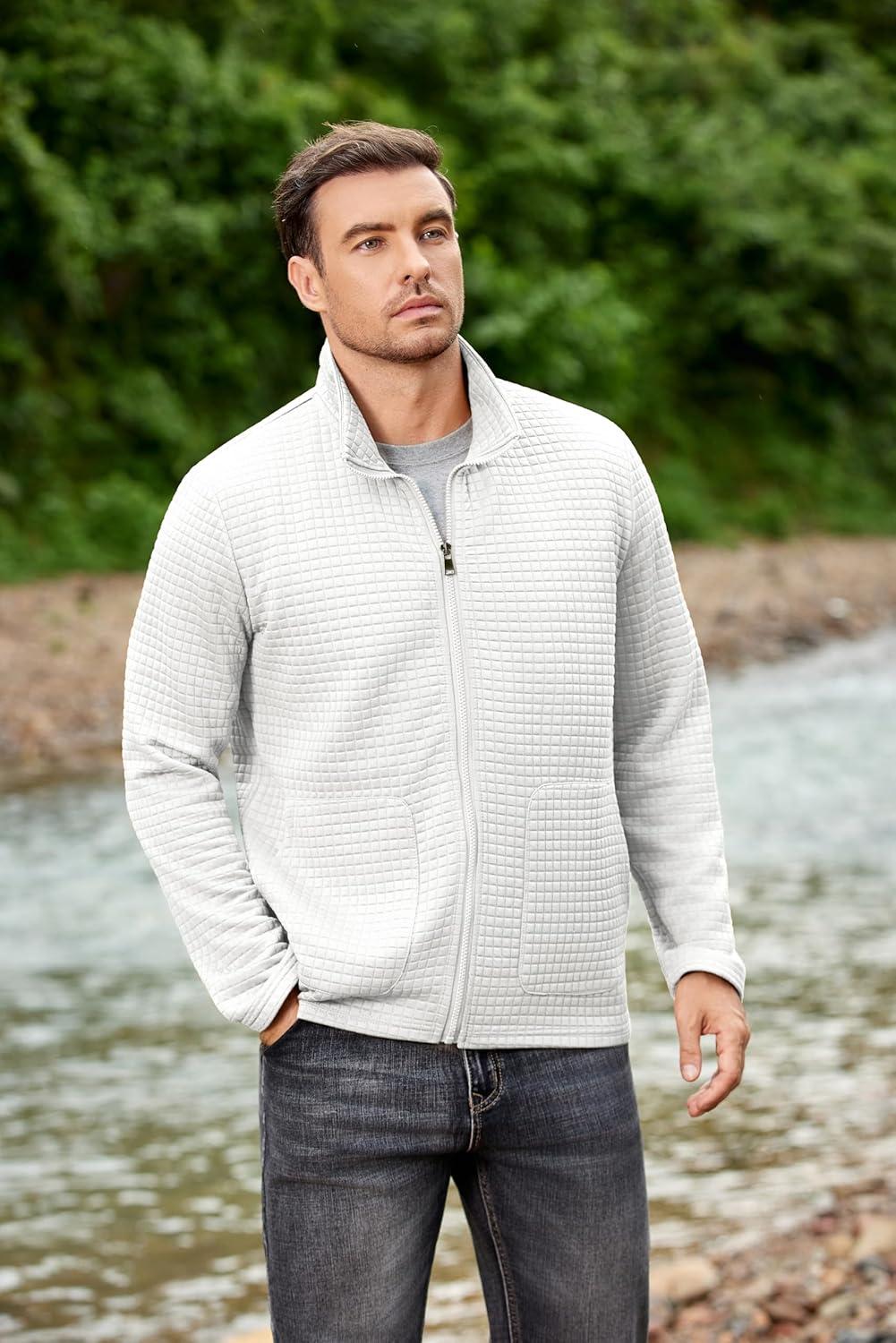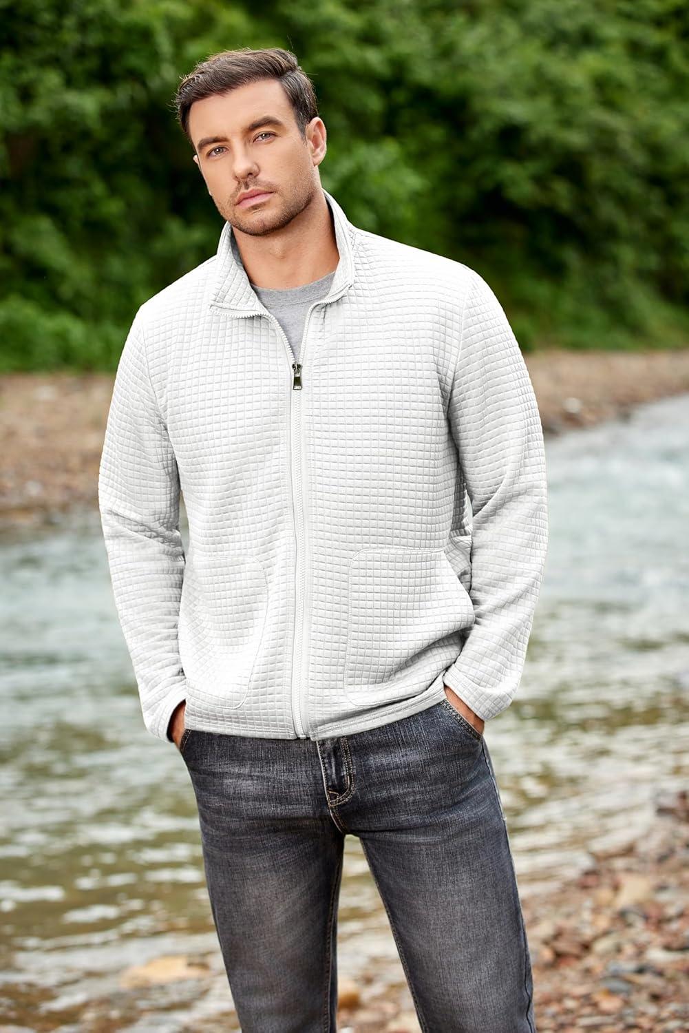 COOFANDY Men’s Lightweight Varsity Jacket Casual Bomber Jackets Waffle Zip Up Sweatshirts with Pocket(White)