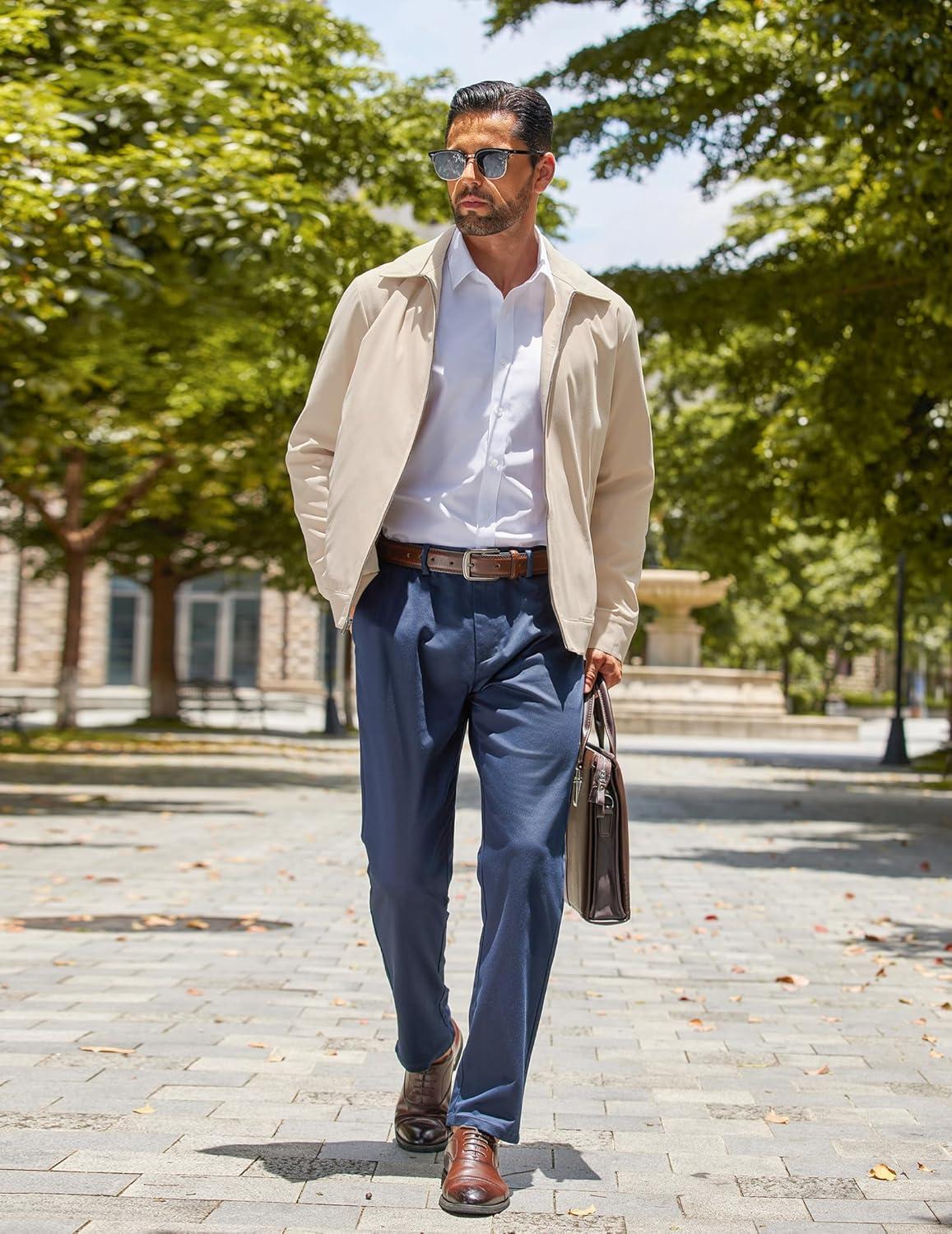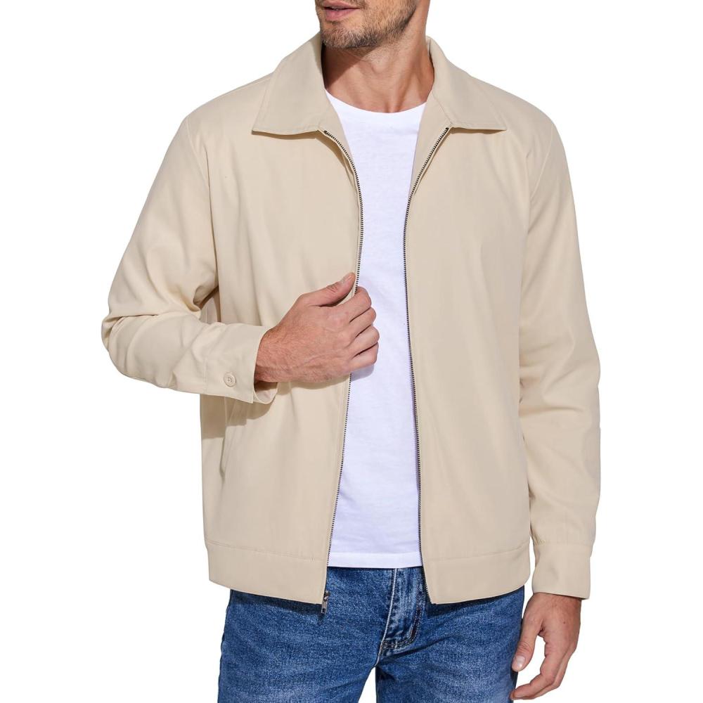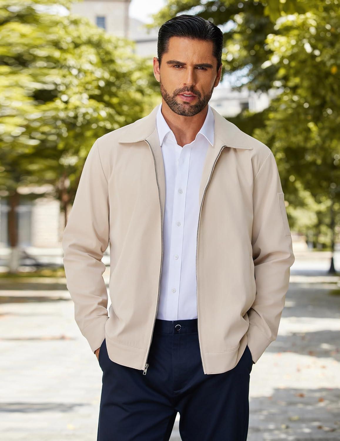 COOFANDY Men’s Lightweight Zip Up Jacket Eisenhower Work Office Jackets Casual Golf Outwear(Beige)