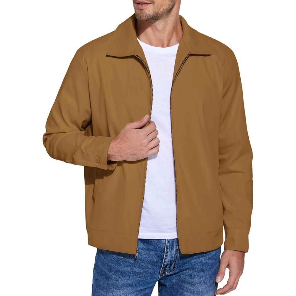 COOFANDY Men’s Lightweight Zip Up Jacket Eisenhower Work Office Jackets Casual Golf Outwear(Light Brown)