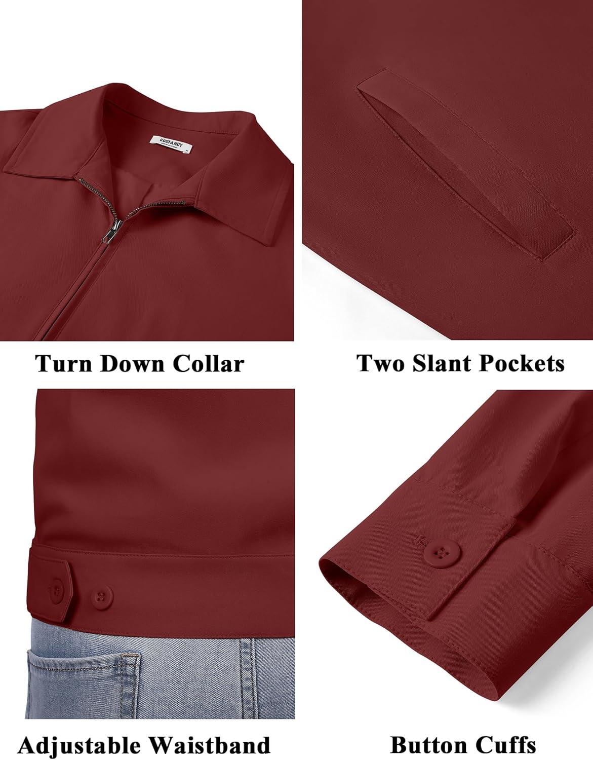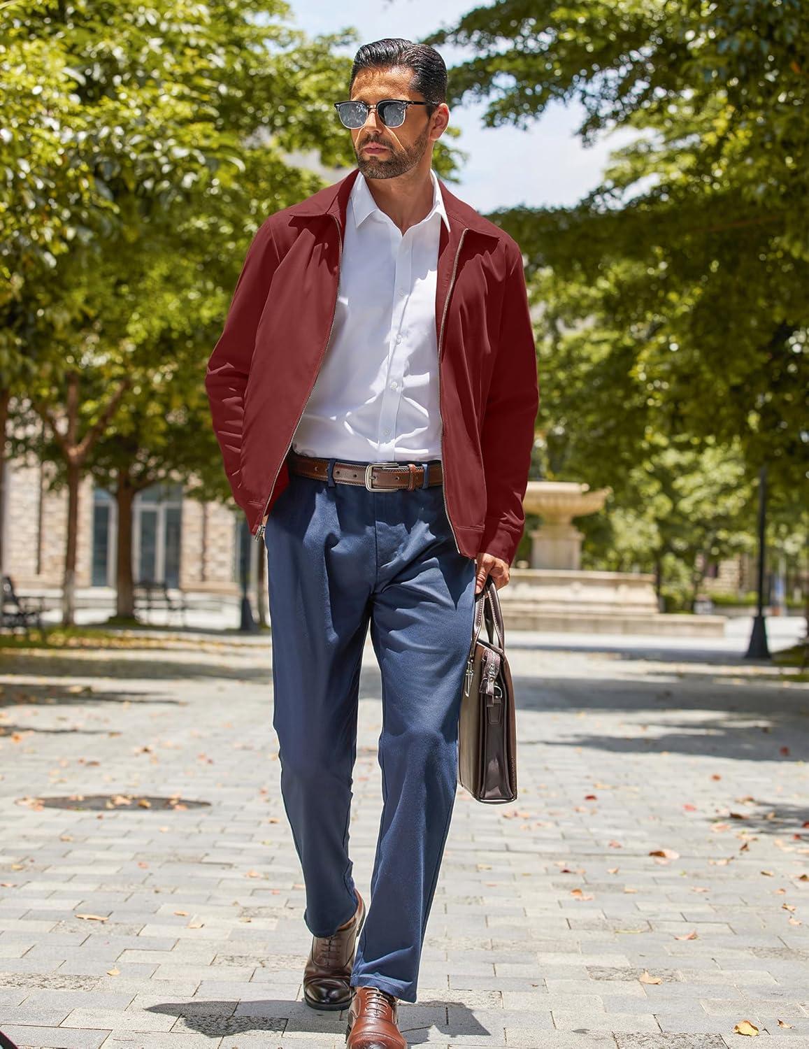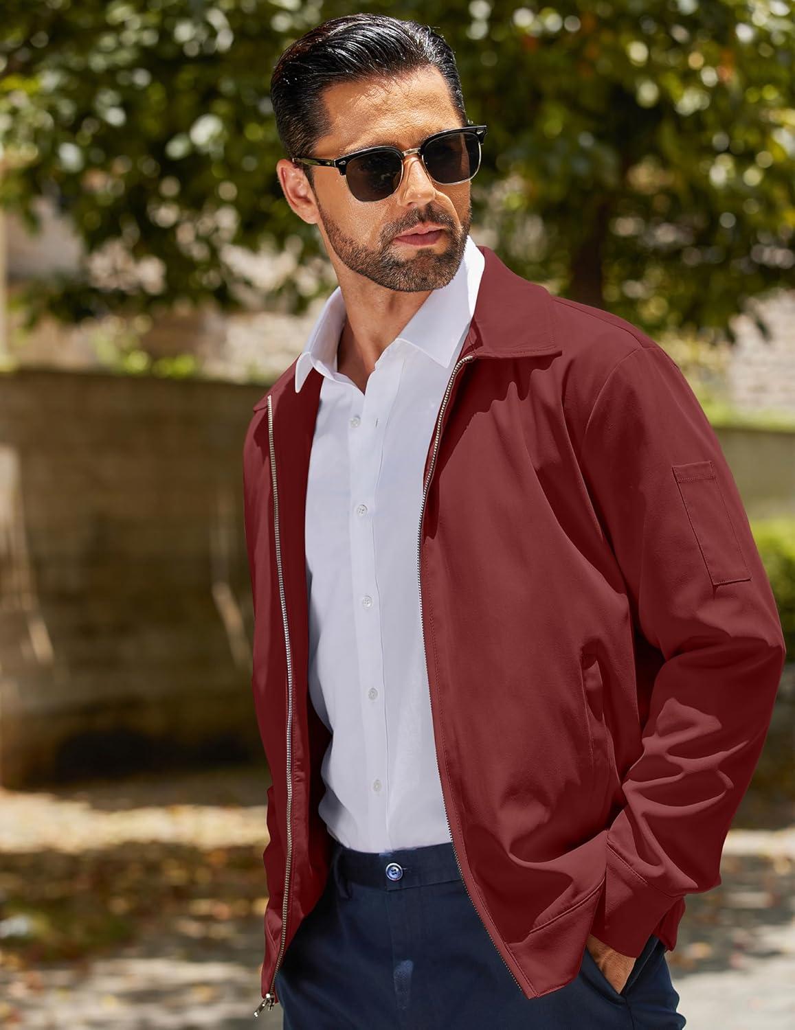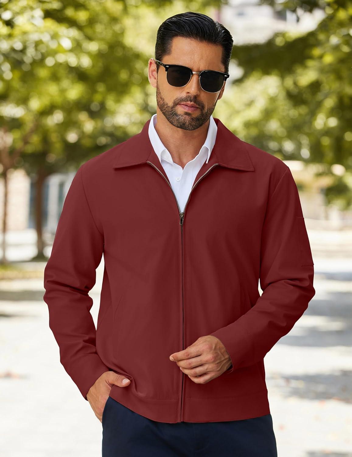 COOFANDY Men’s Lightweight Zip Up Jacket Eisenhower Work Office Jackets Casual Golf Outwear(Wine Red)