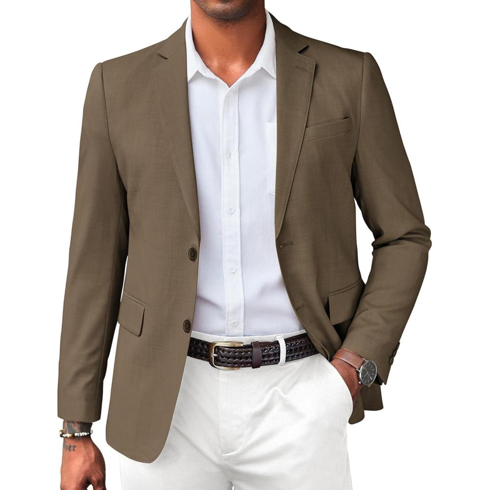 COOFANDY Mens Linen Casual Blazer Slim Fit Sport Coat Two Button Summer Suit Jacket Lightweight Business Sport Jacket(Brown)