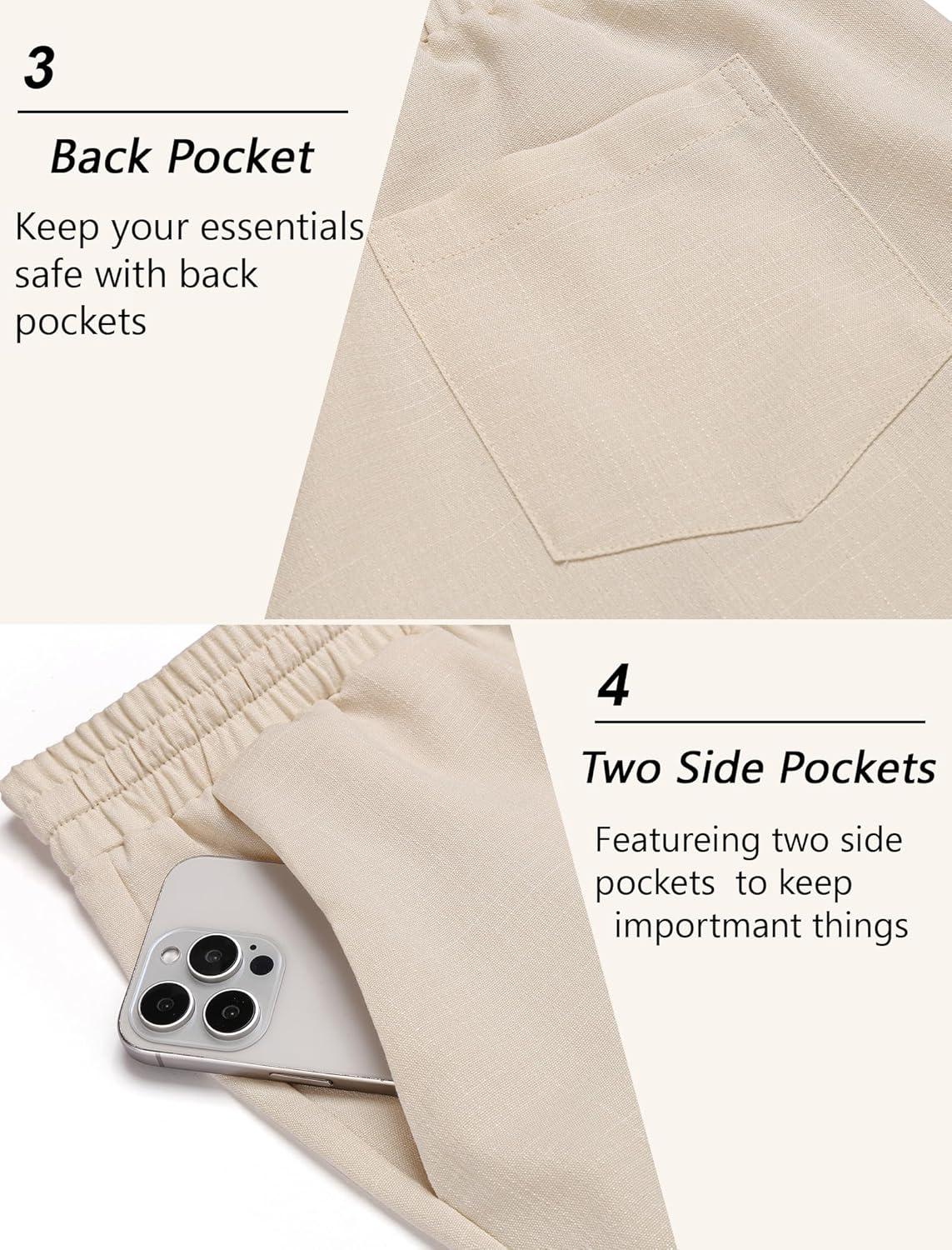 COOFANDY Mens Linen Casual Pants Lightweight Drawstring Beach Pants Elastic Waist Cropped Pants(Beige)