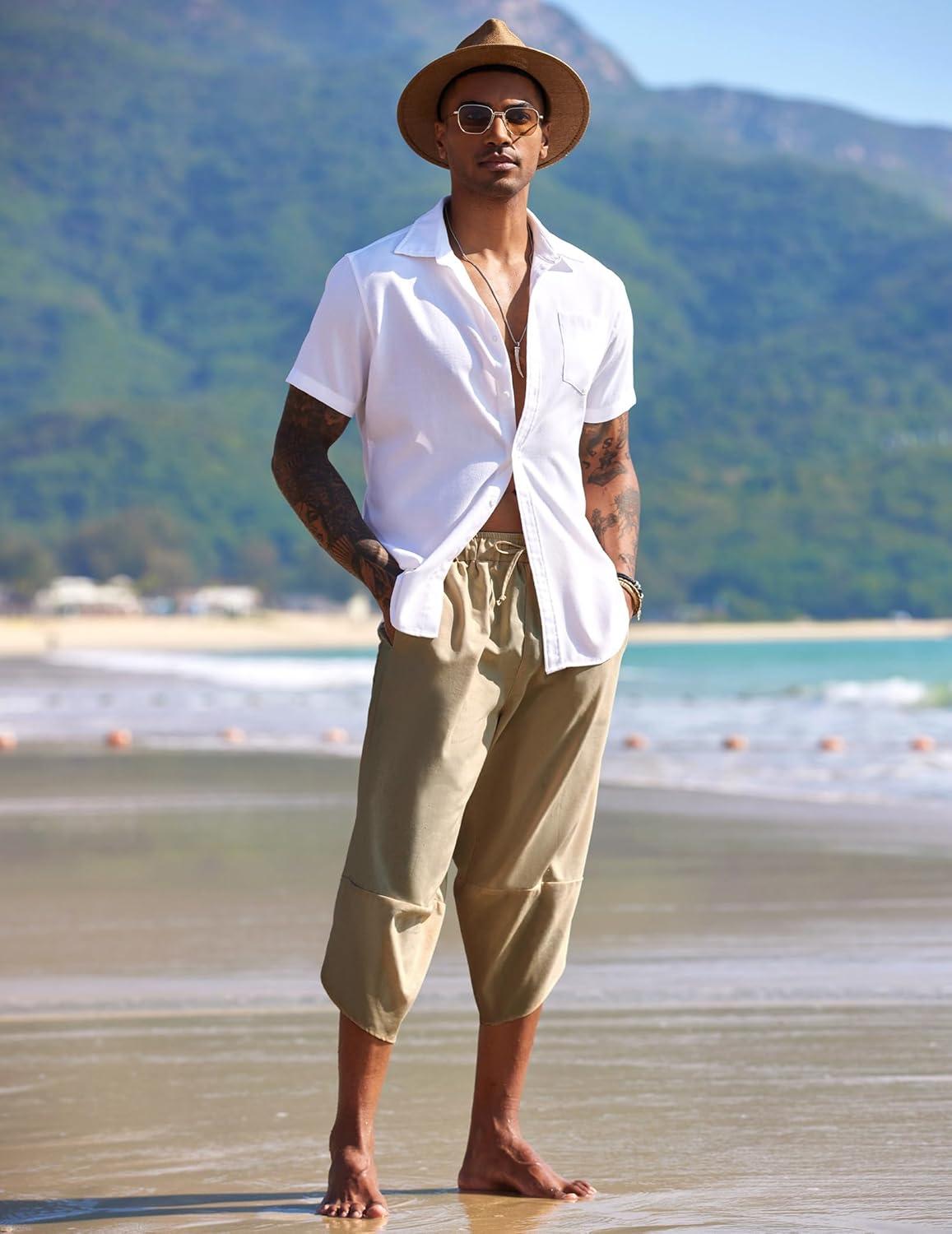 Be the first to review “COOFANDY Men’s Linen Harem Capri Pants Lightweight Loose 3/4 Shorts Drawstring Elastic Waist Casual Beach Boho Yoga Trousers(Light Brown)”