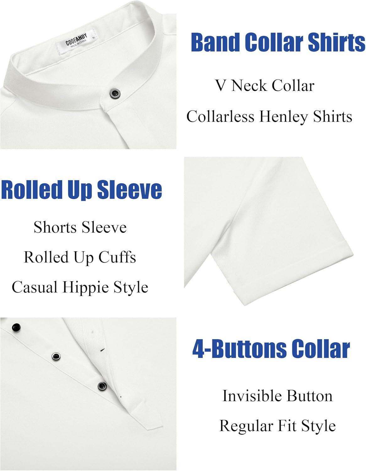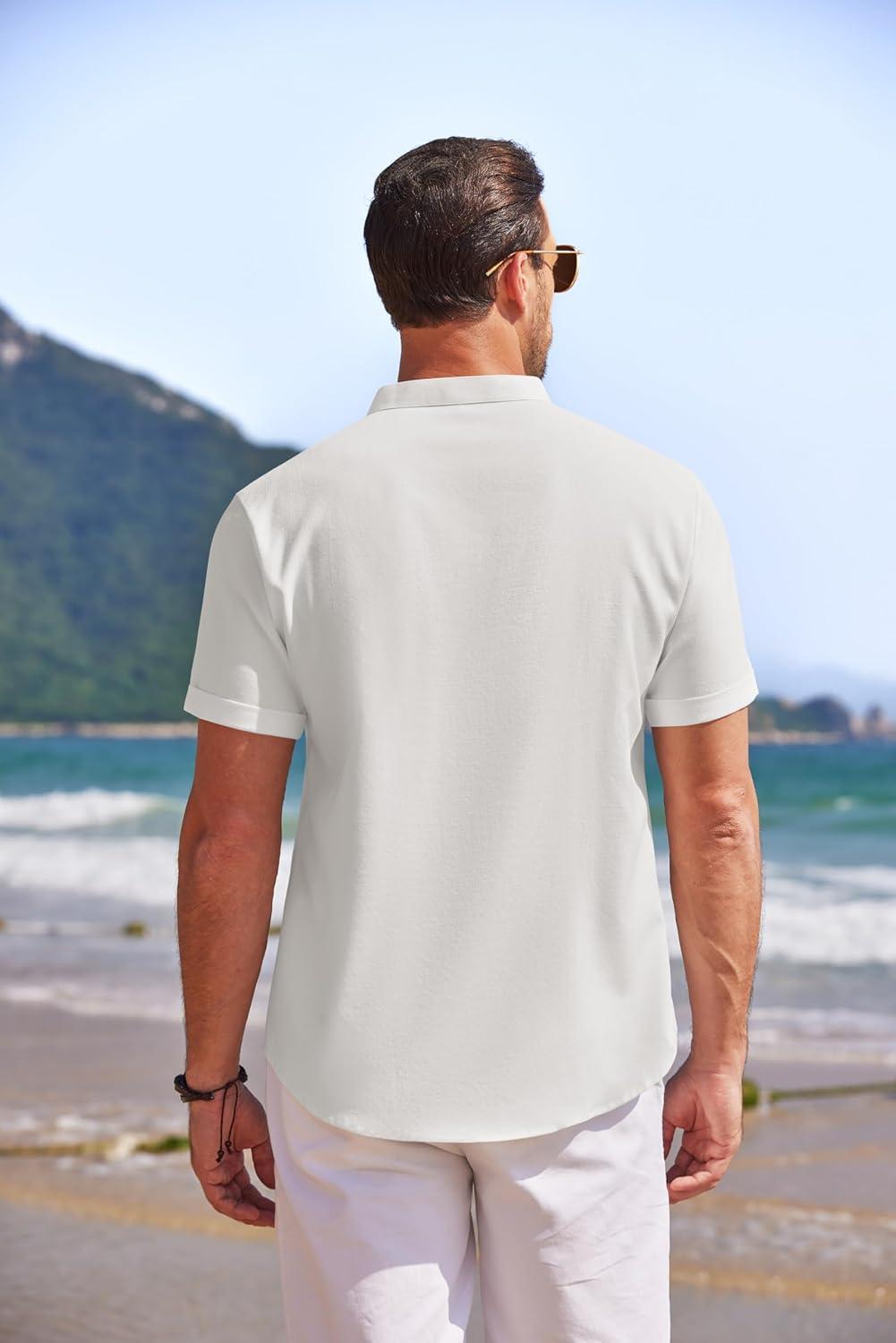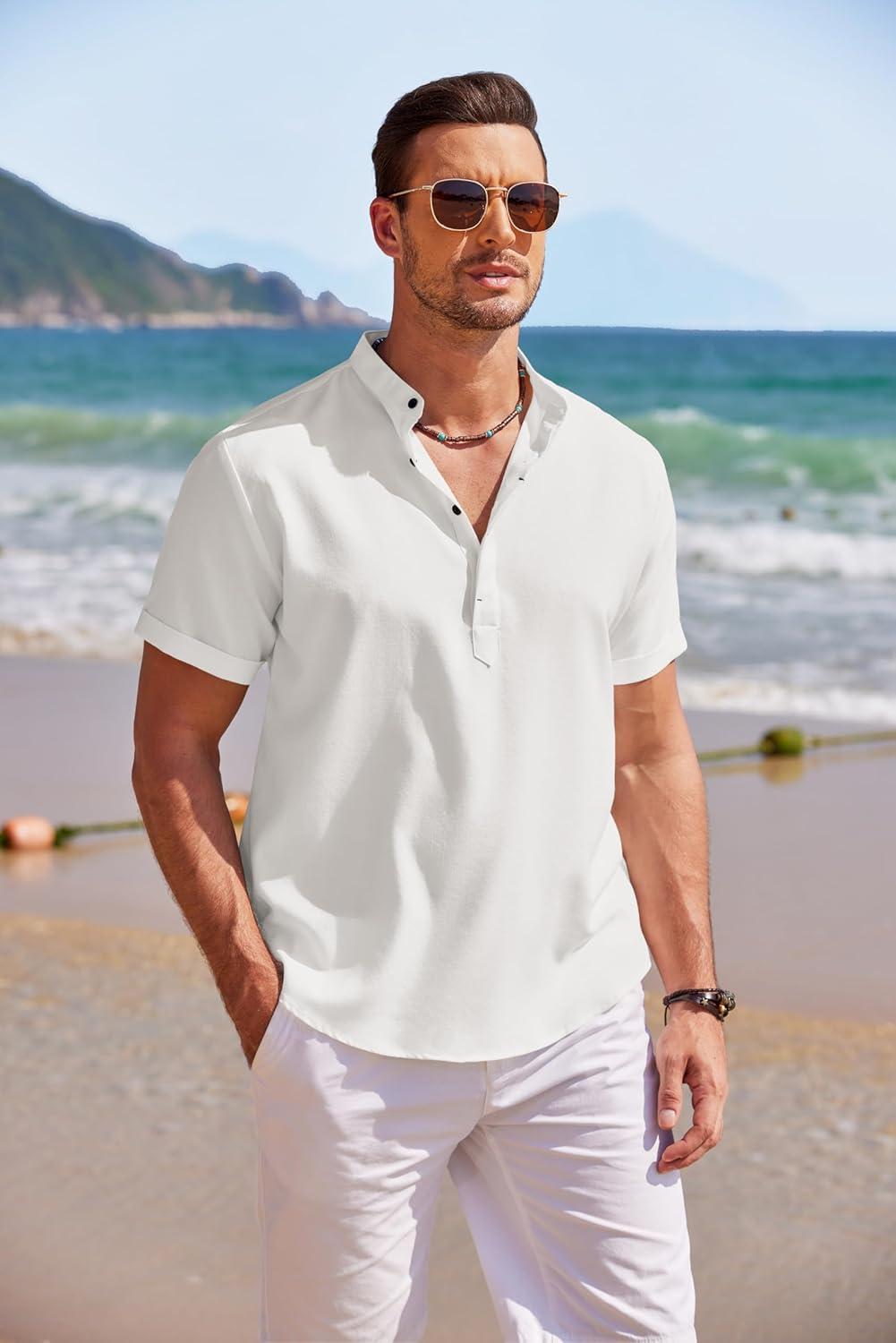 COOFANDY Men’s Linen Henley Shirt Short Sleeve Casual Summer Beach Hippie T Shirts(1-white)