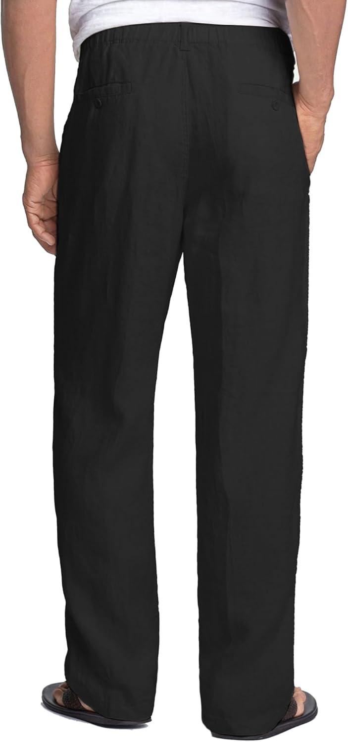COOFANDY Men’s Linen Pants Casual Beach Summer Pant Elastic Waist Drawstring Lightweight Trousers(Black)