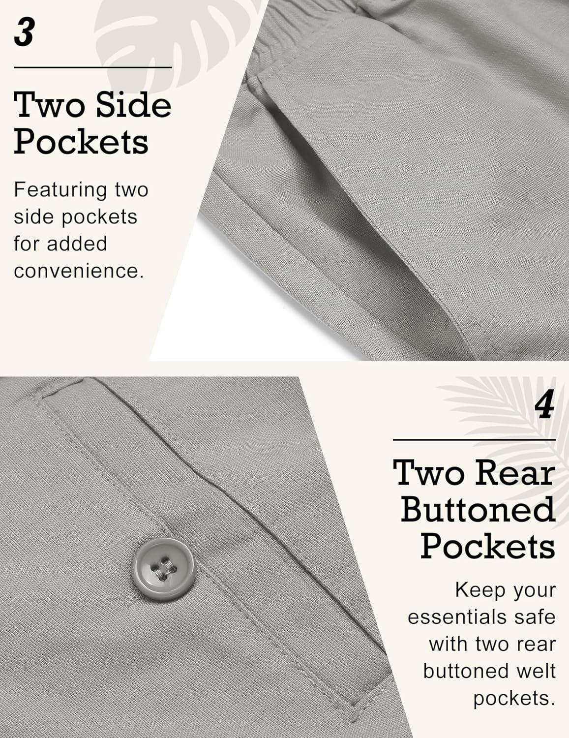COOFANDY Men’s Linen Pants Casual Beach Summer Pant Elastic Waist Drawstring Lightweight Trousers(Grey)