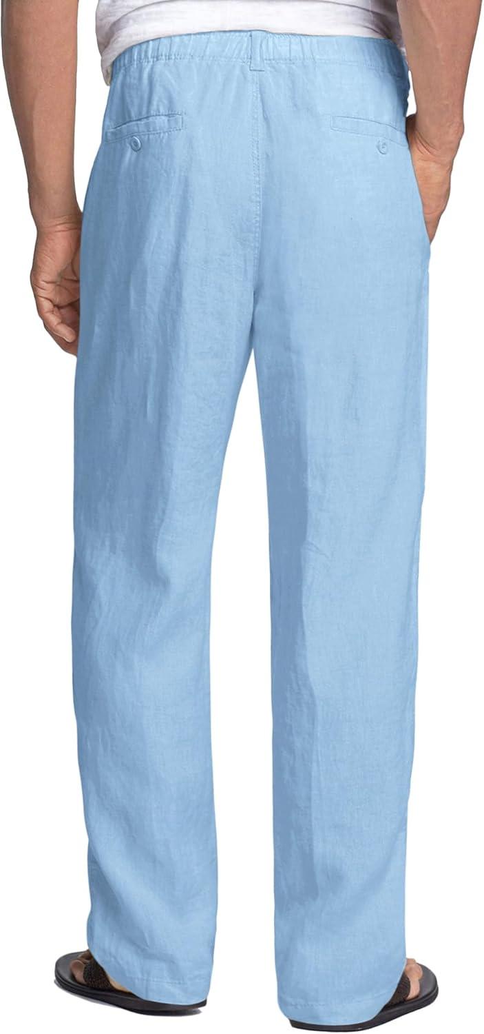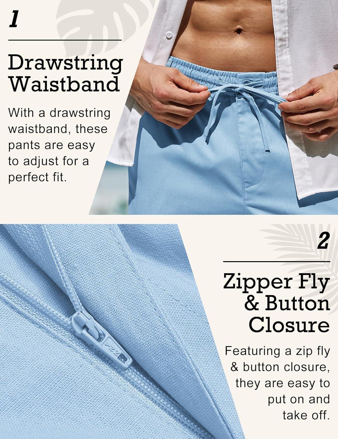 COOFANDY Men’s Linen Pants Casual Beach Summer Pant Elastic Waist Drawstring Lightweight Trousers(Sky Blue)