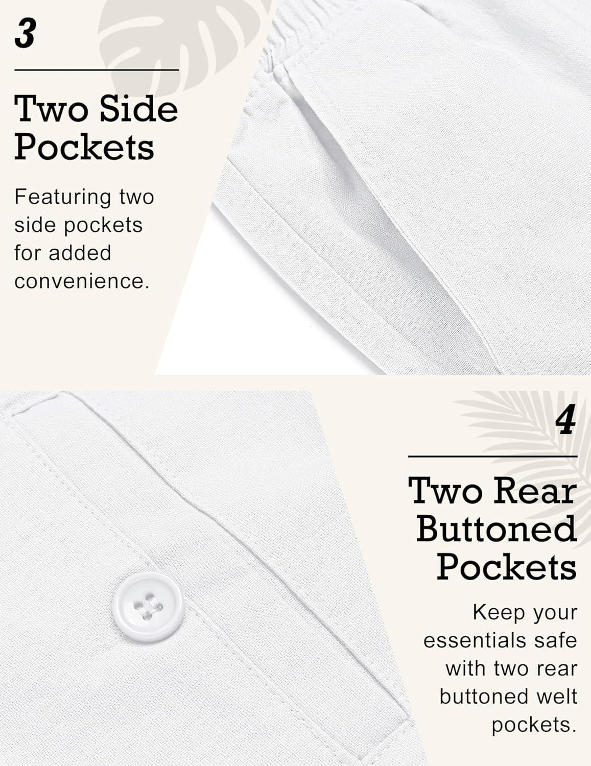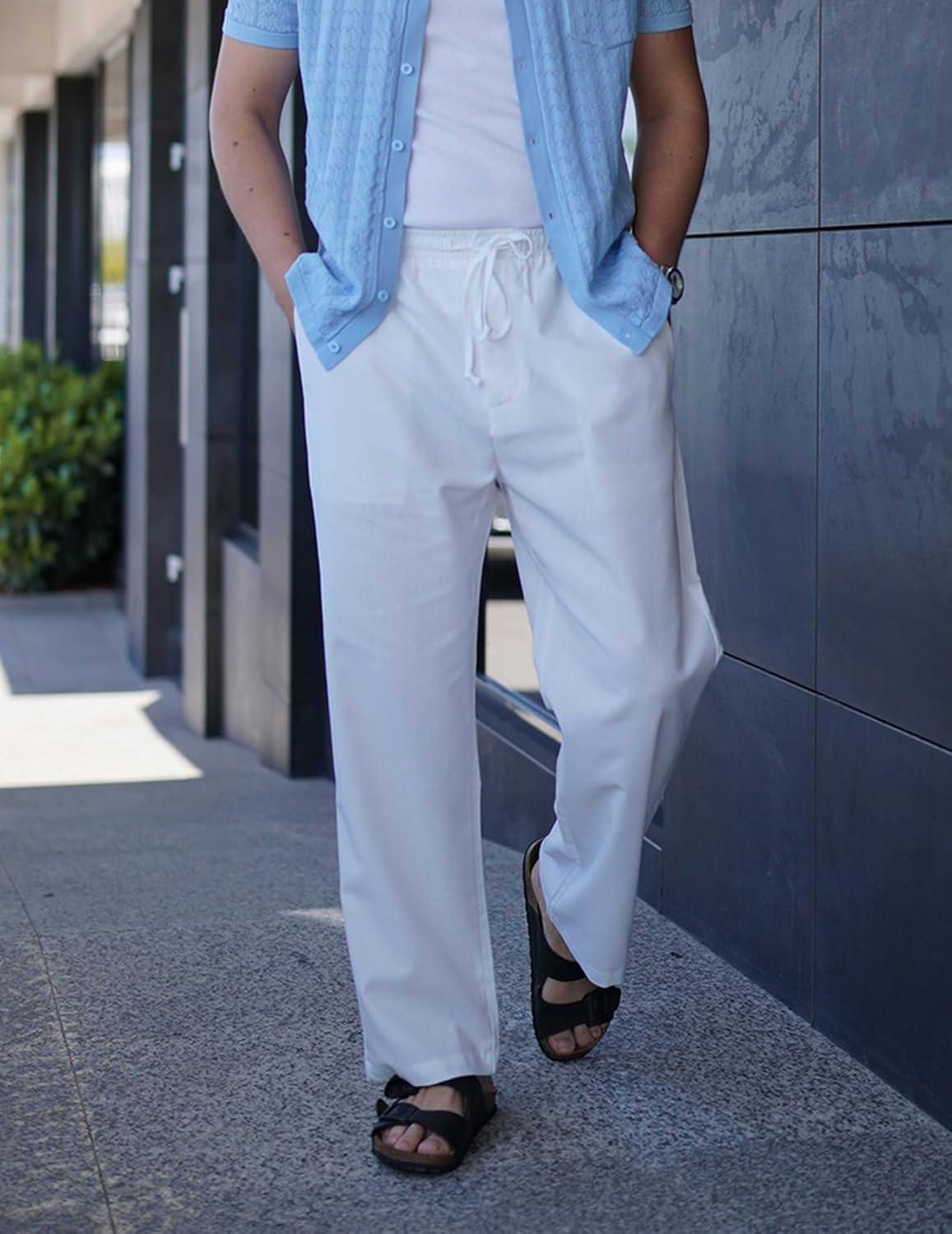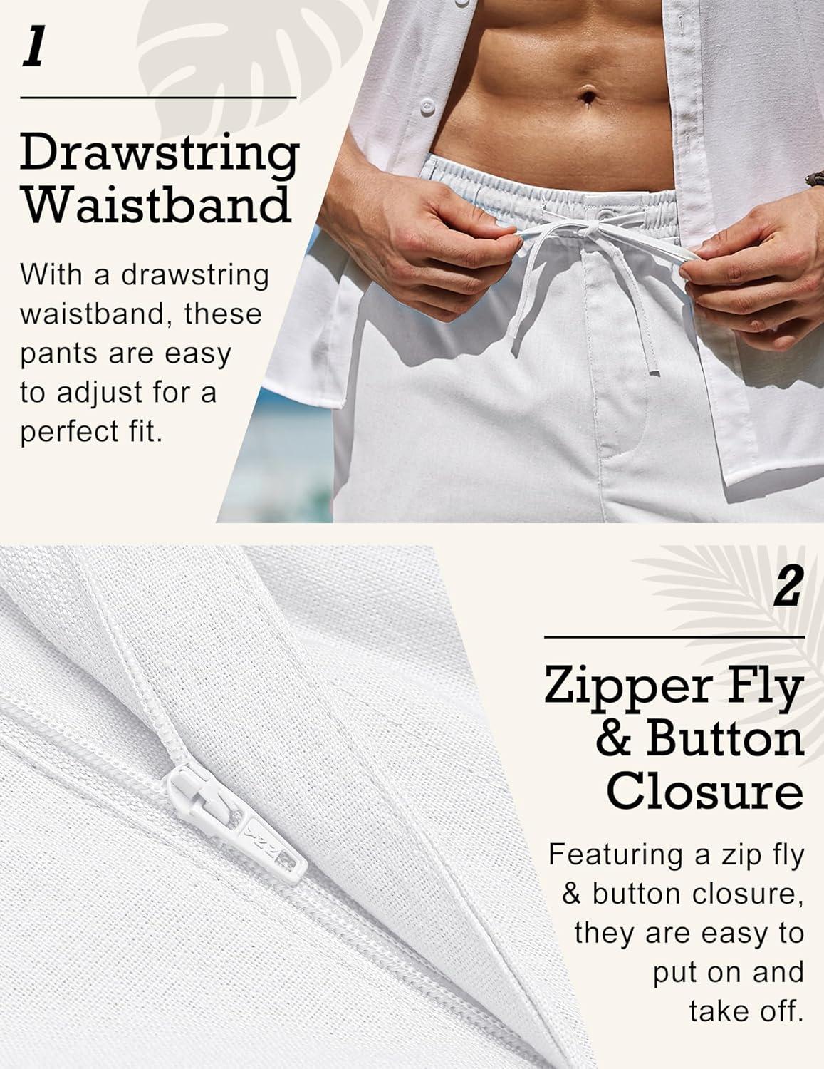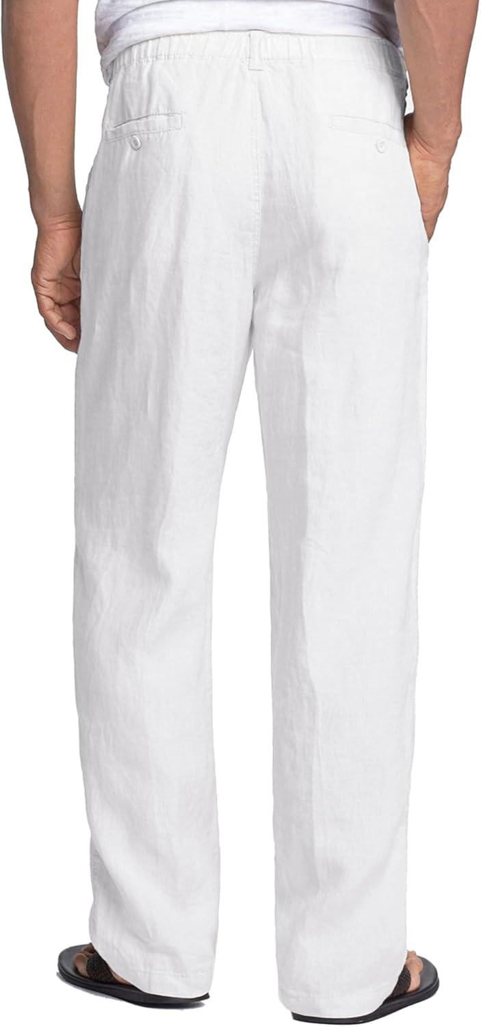 COOFANDY Men’s Linen Pants Casual Beach Summer Pant Elastic Waist Drawstring Lightweight Trousers(White)