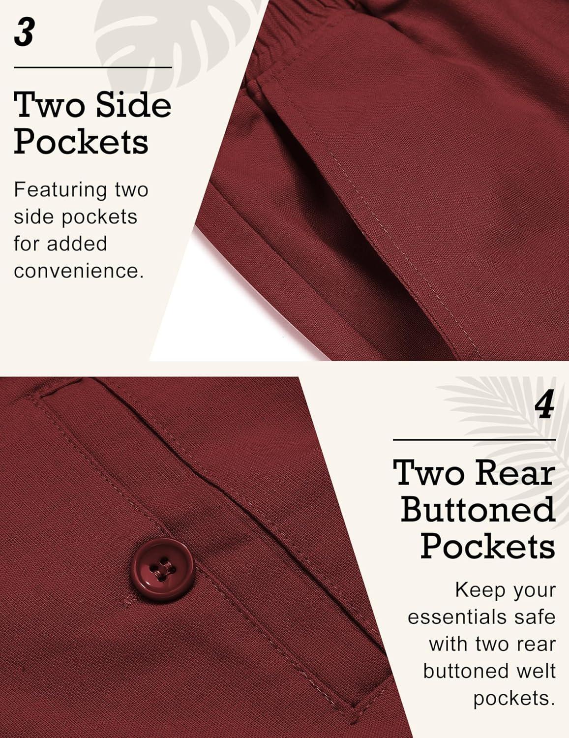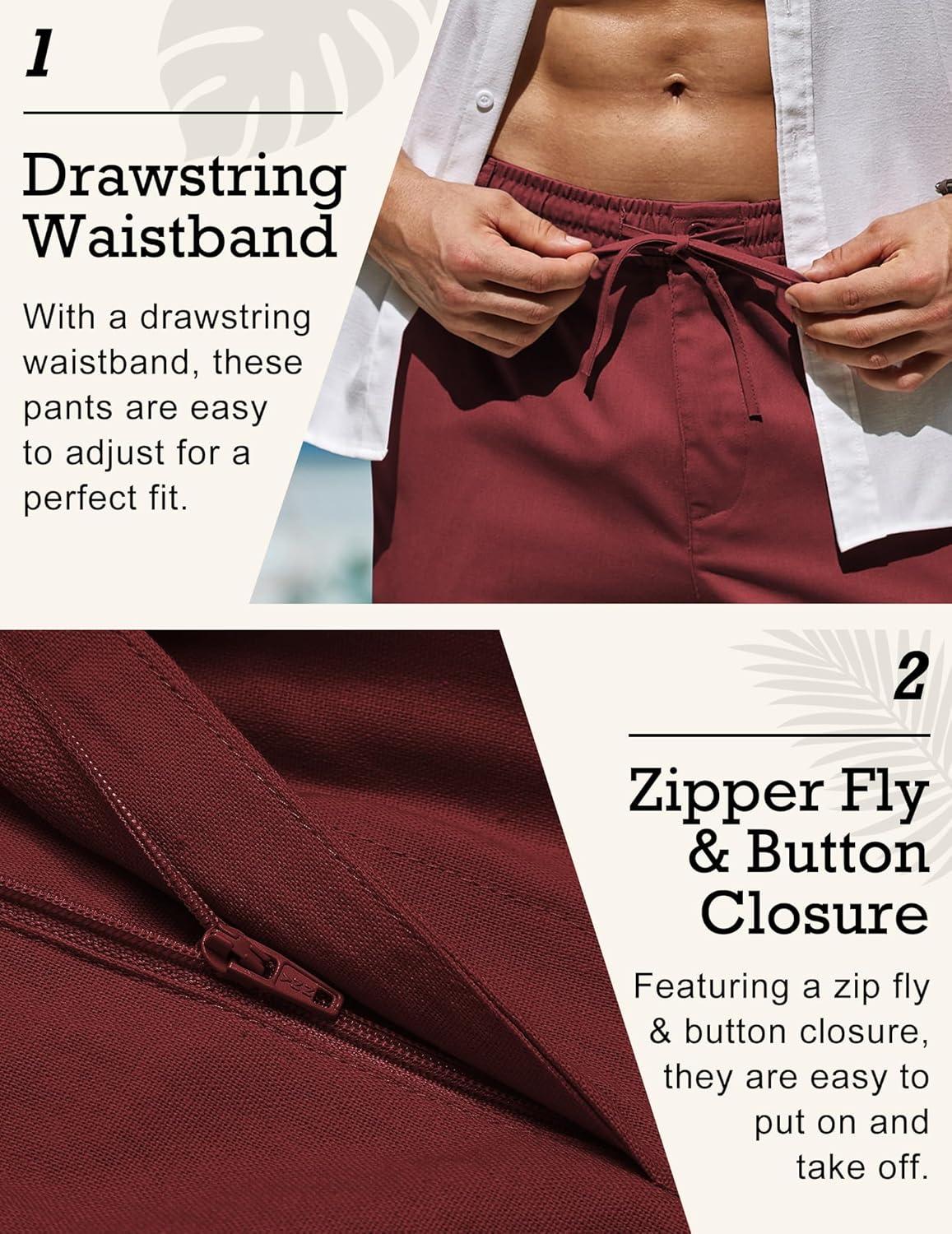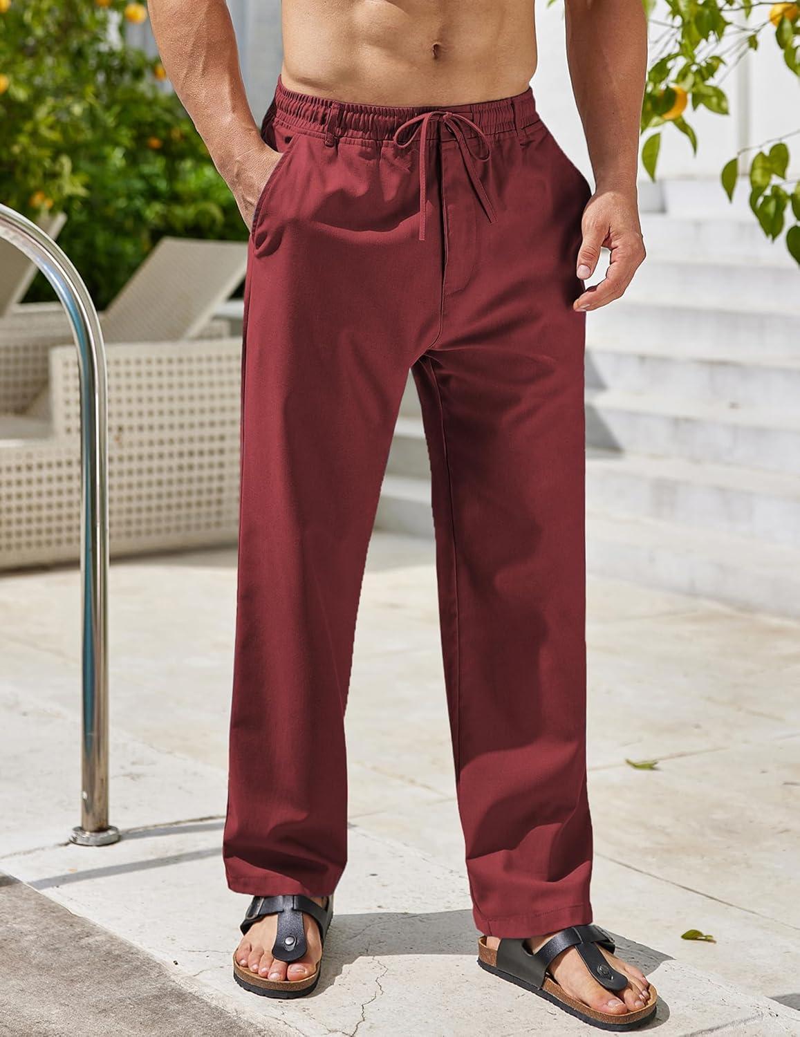 COOFANDY Men’s Linen Pants Casual Beach Summer Pant Elastic Waist Drawstring Lightweight Trousers(Wine Red)