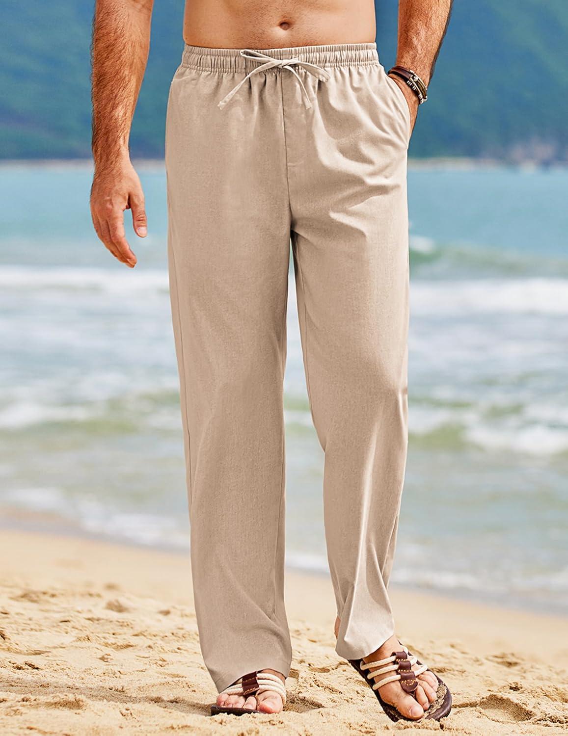 Whether you're relaxing beachfront or keeping it casual, these men's linen-blend pants are a versatile addition to your wardrobe, combining style and functionality seamlessly.