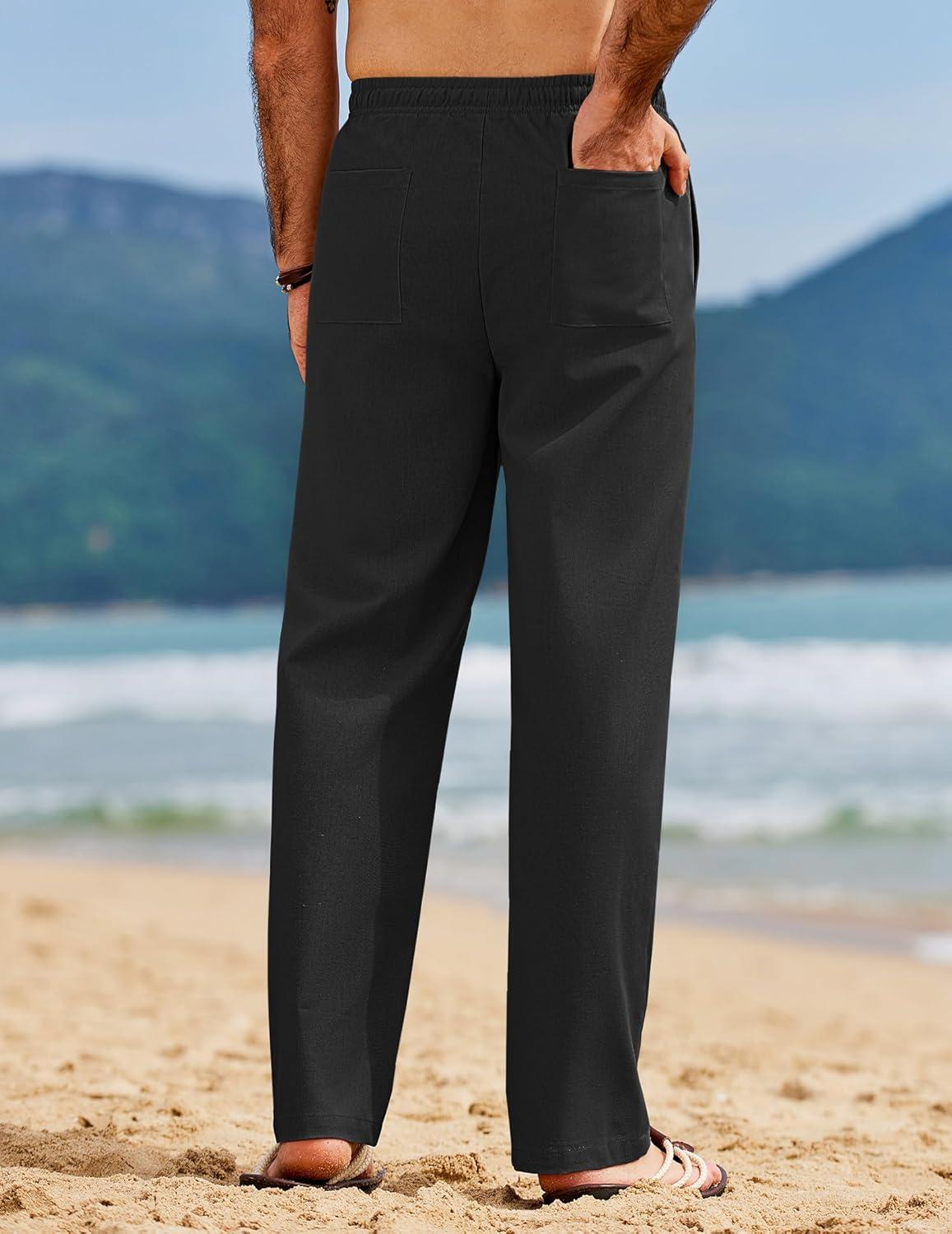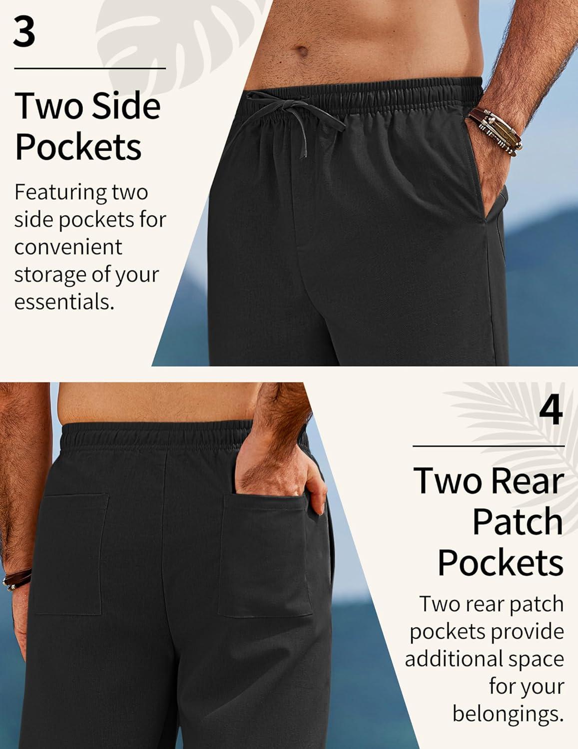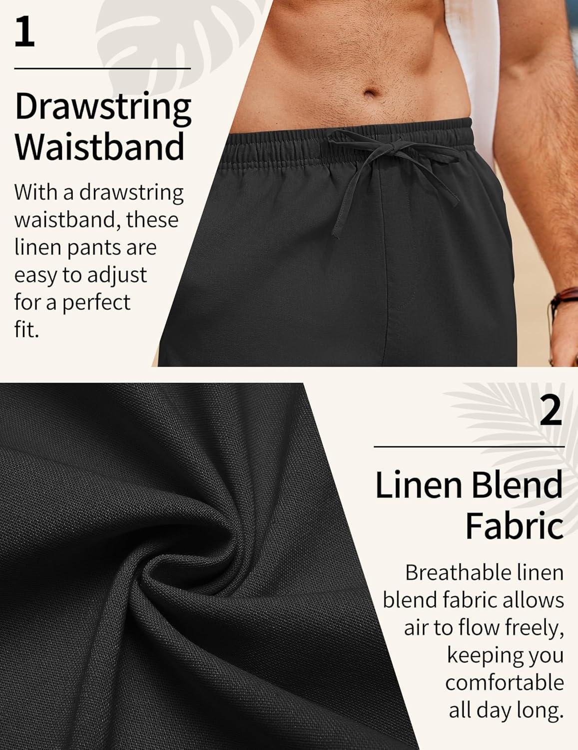 COOFANDY Men’s Linen Pants Casual Loose Fit Beach Summer Yoga Pants Lightweight Drawstring Linen Trousers(Black)