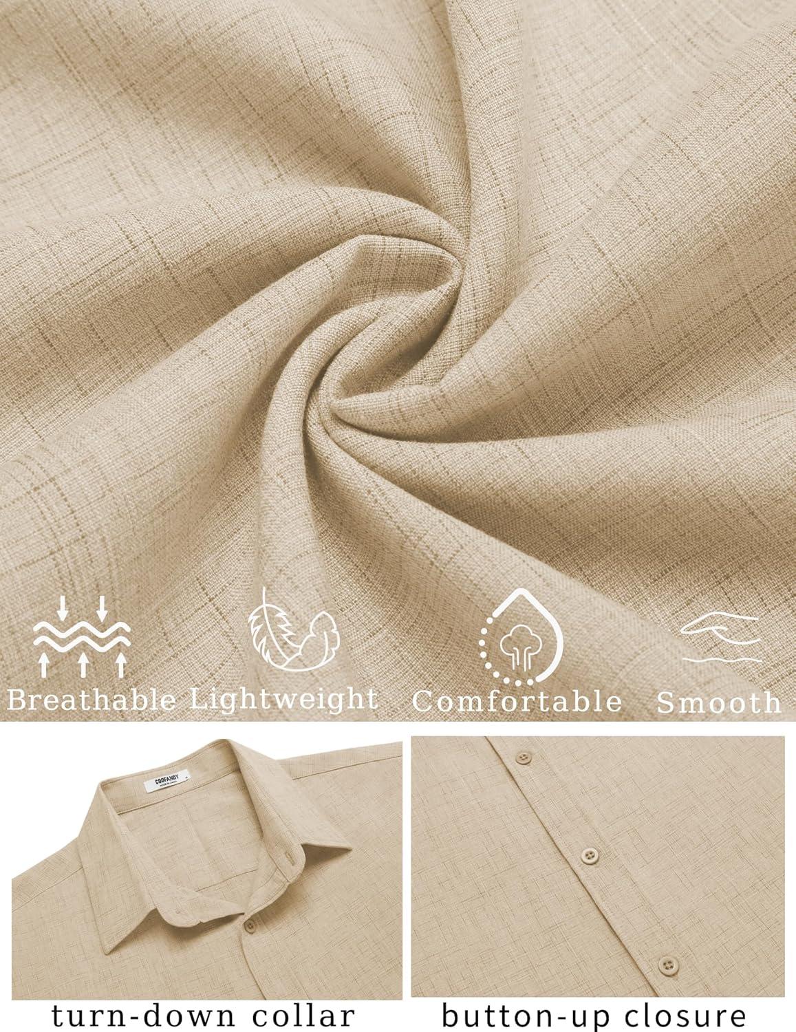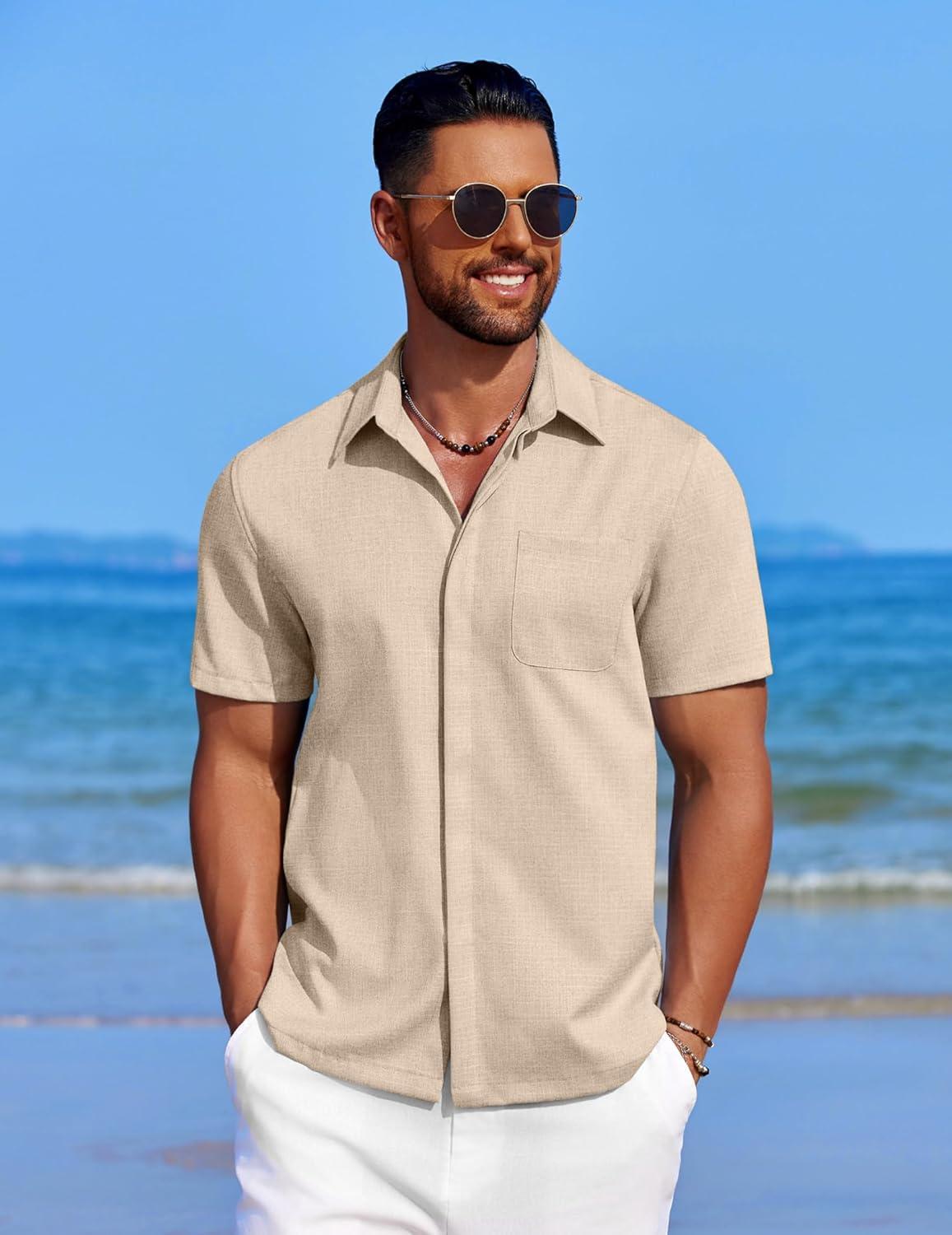 COOFANDY Mens Linen Shirt Casual Short Sleeve Button Down Shirt Summer Beach Vacation Wedding Wear(Beige)