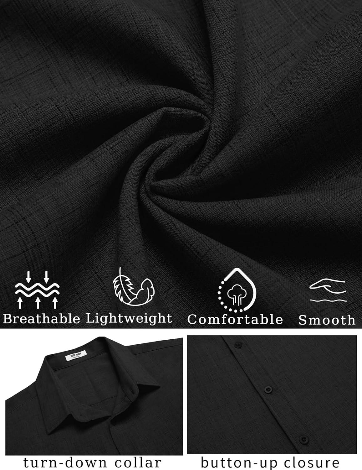 COOFANDY Mens Linen Shirt Casual Short Sleeve Button Down Shirt Summer Beach Vacation Wedding Wear(Black)