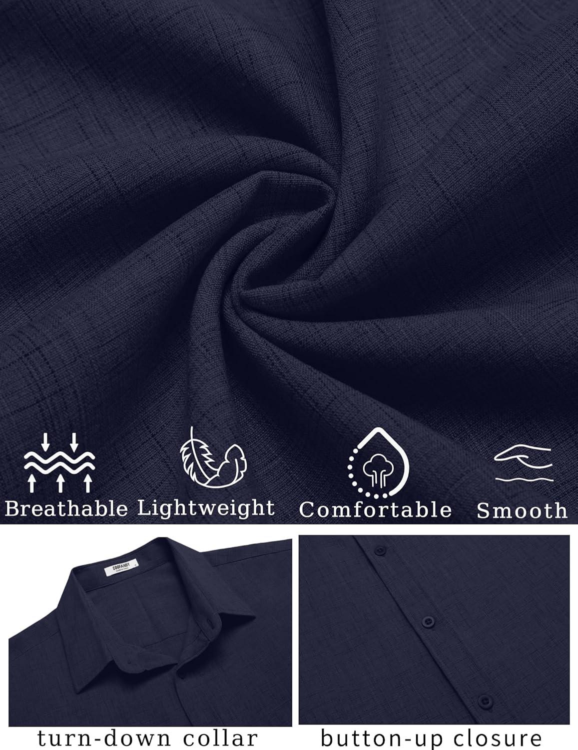 COOFANDY Mens Linen Shirt Casual Short Sleeve Button Down Shirt Summer Beach Vacation Wedding Wear(Blueviolet)