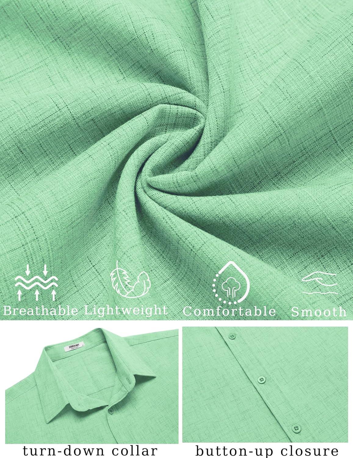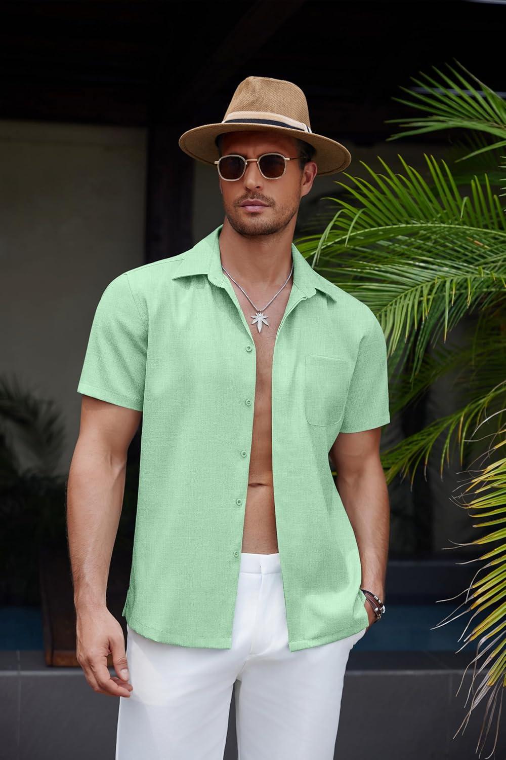 COOFANDY Mens Linen Shirt Casual Short Sleeve Button Down Shirt Summer Beach Vacation Wedding Wear(Ice Green)