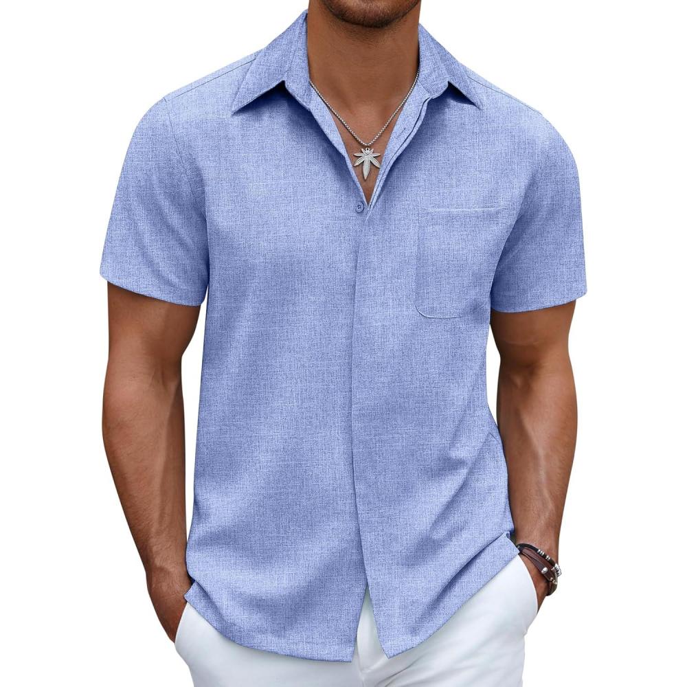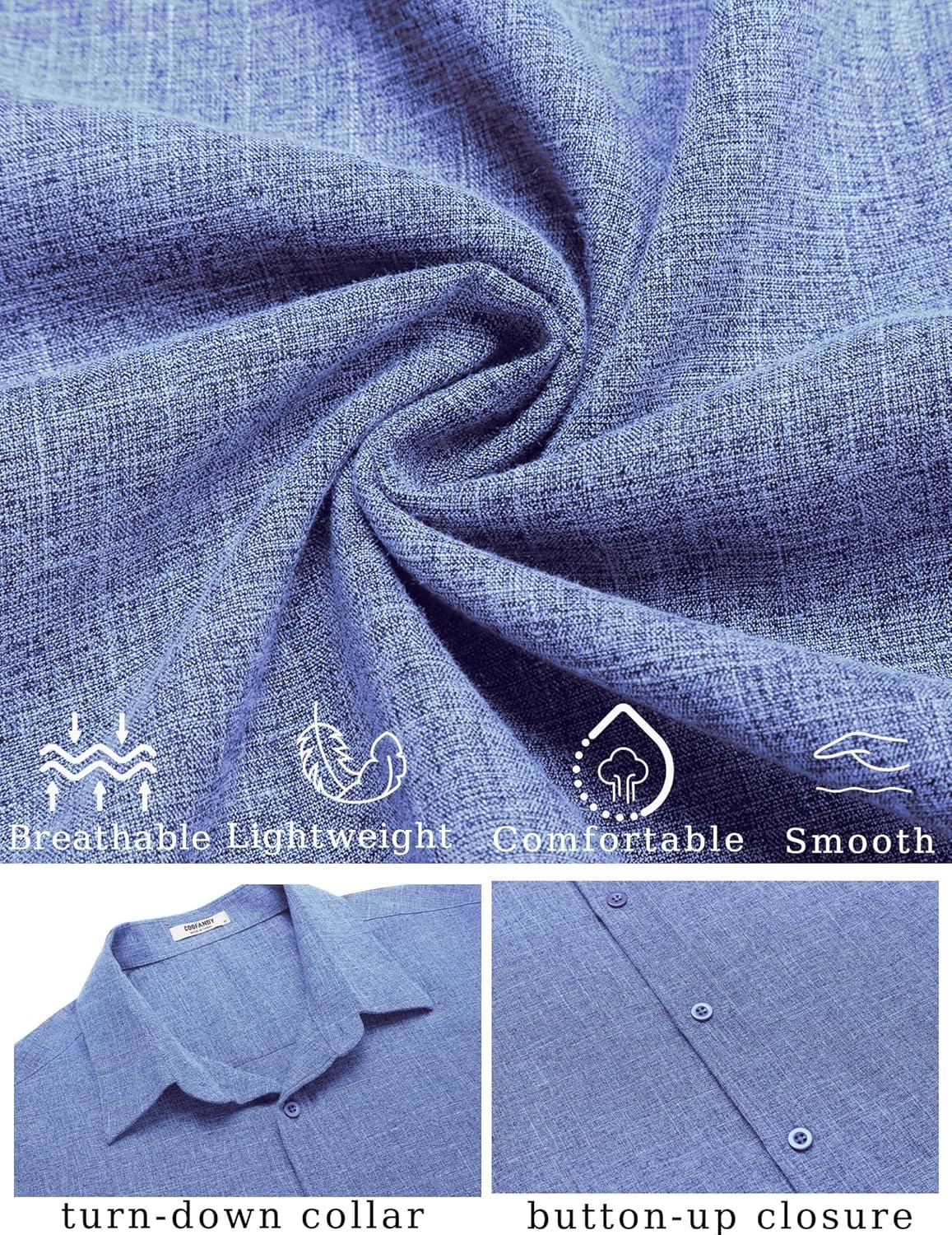COOFANDY Mens Linen Shirt Casual Short Sleeve Button Down Shirt Summer Beach Vacation Wedding Wear(Ocean Blue)