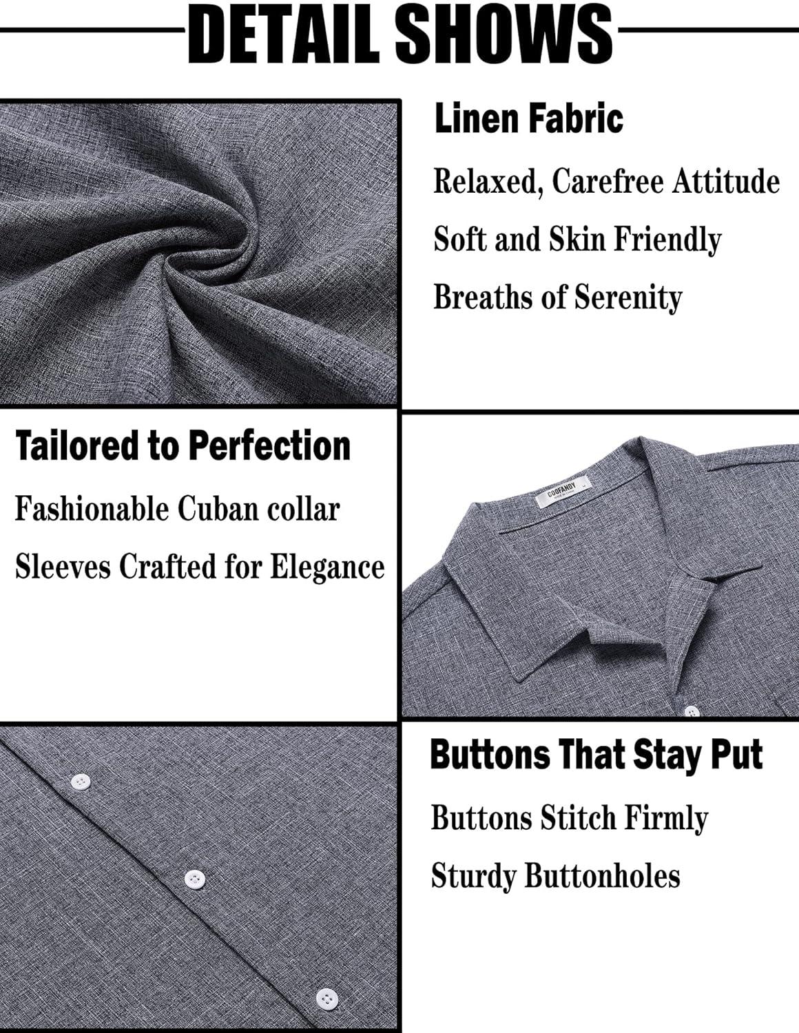 Tailored for the Modern Man: The shirt’s gently tapered cut provides a tailored silhouette, perfect for pairing with chinos or shorts. It's a staple piece that complements your wardrobe with its timeless solid color and effortless style. Matching with linen shorts/pants, trousers, jacket or jeans. Daily casual, office, school, wedding, camping, travel, yoga, date, beach, party, wedding and travel.