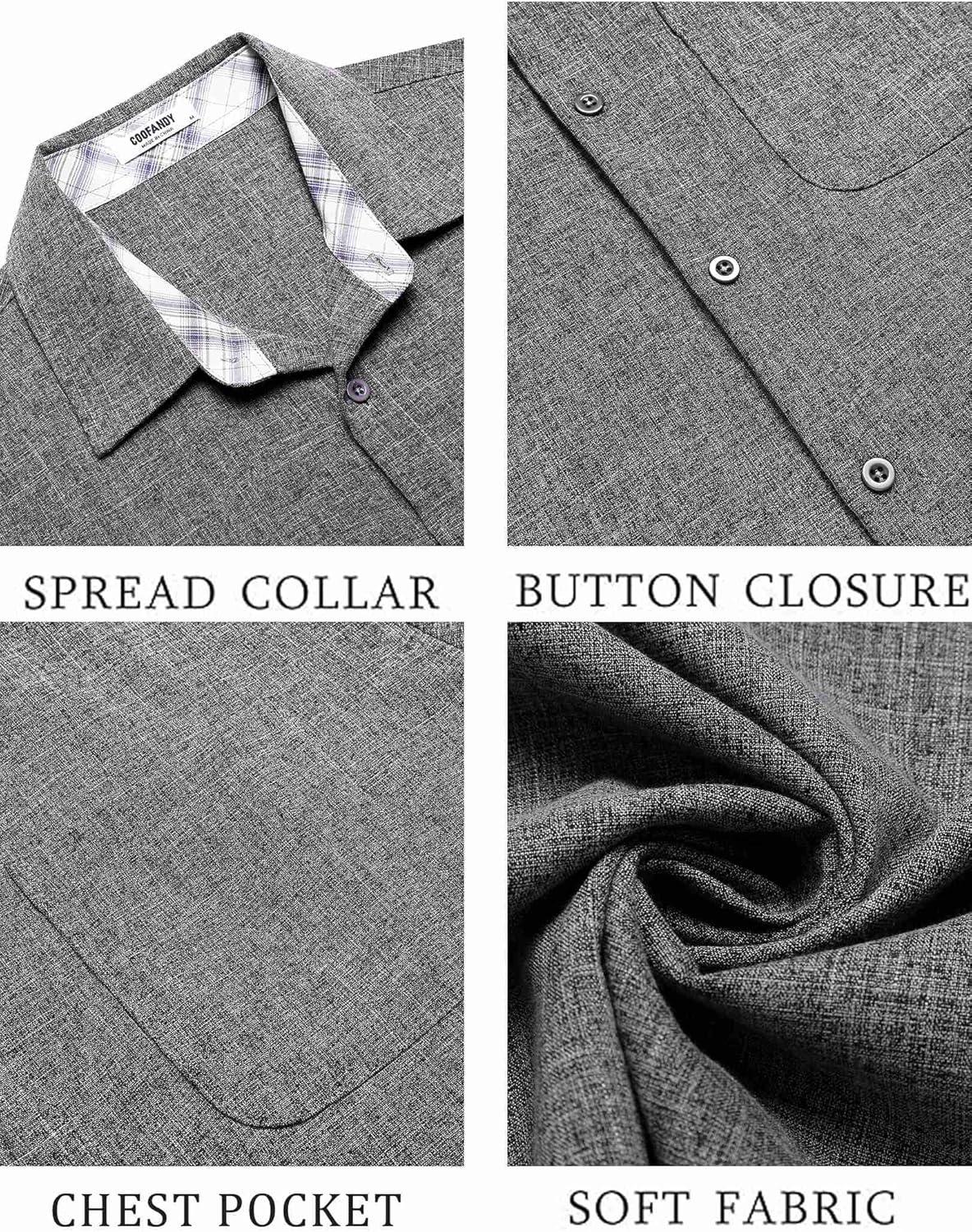 COOFANDY Men’s Linen Short Sleeve Button Down Shirts Casual Summer Beach Vacation Shirts(Granite Gray)