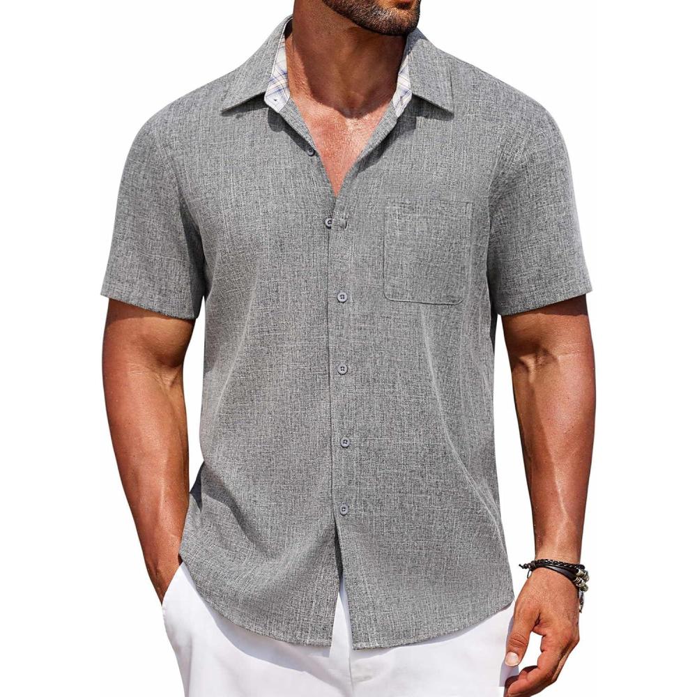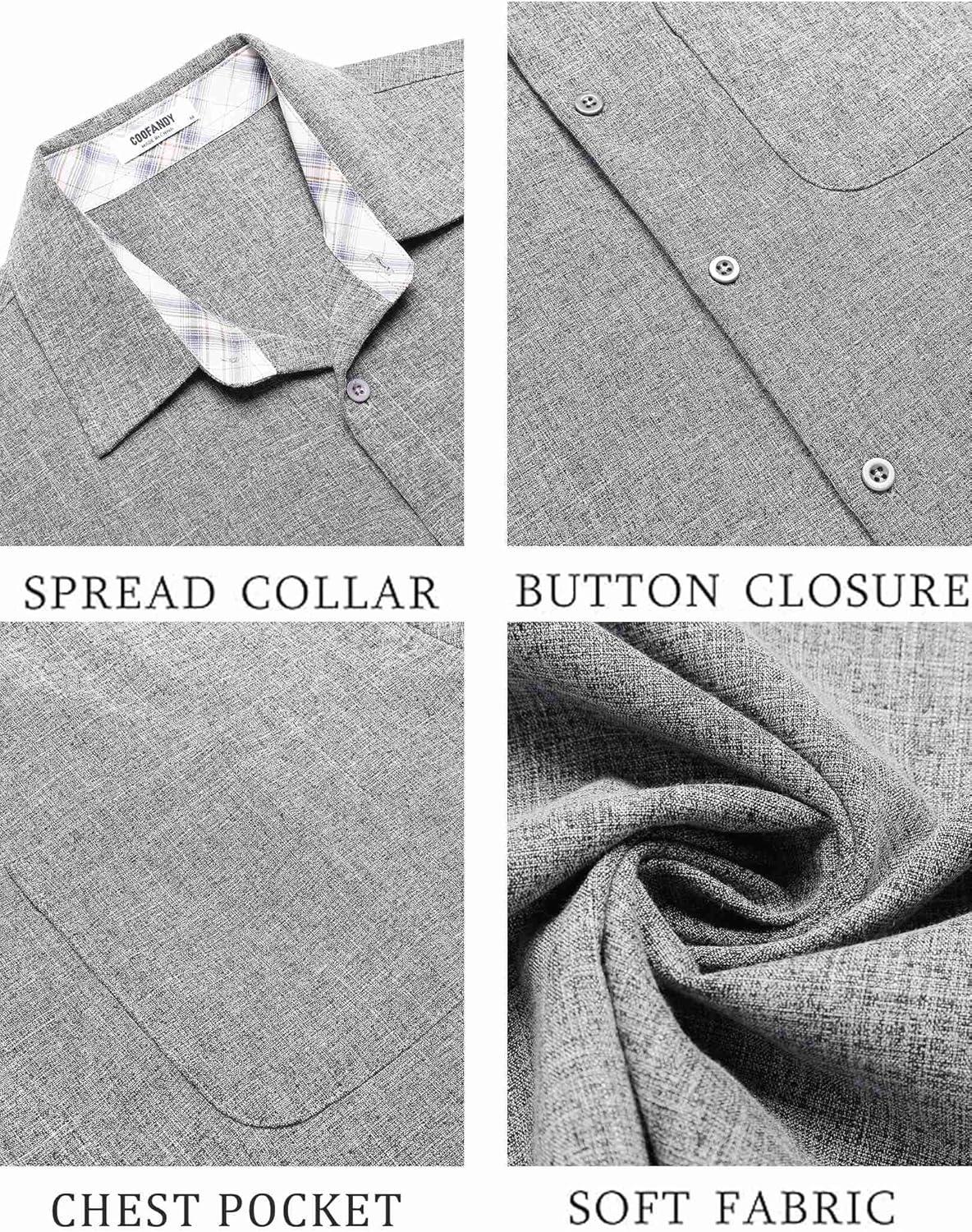 COOFANDY Men’s Linen Short Sleeve Button Down Shirts Casual Summer Beach Vacation Shirts(Harbor Mist)