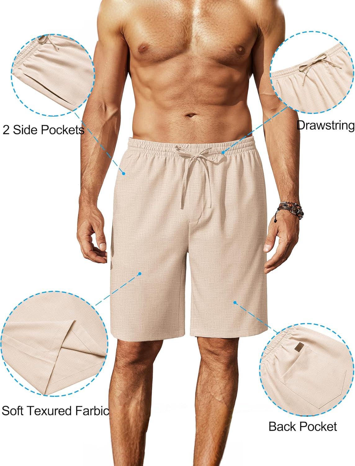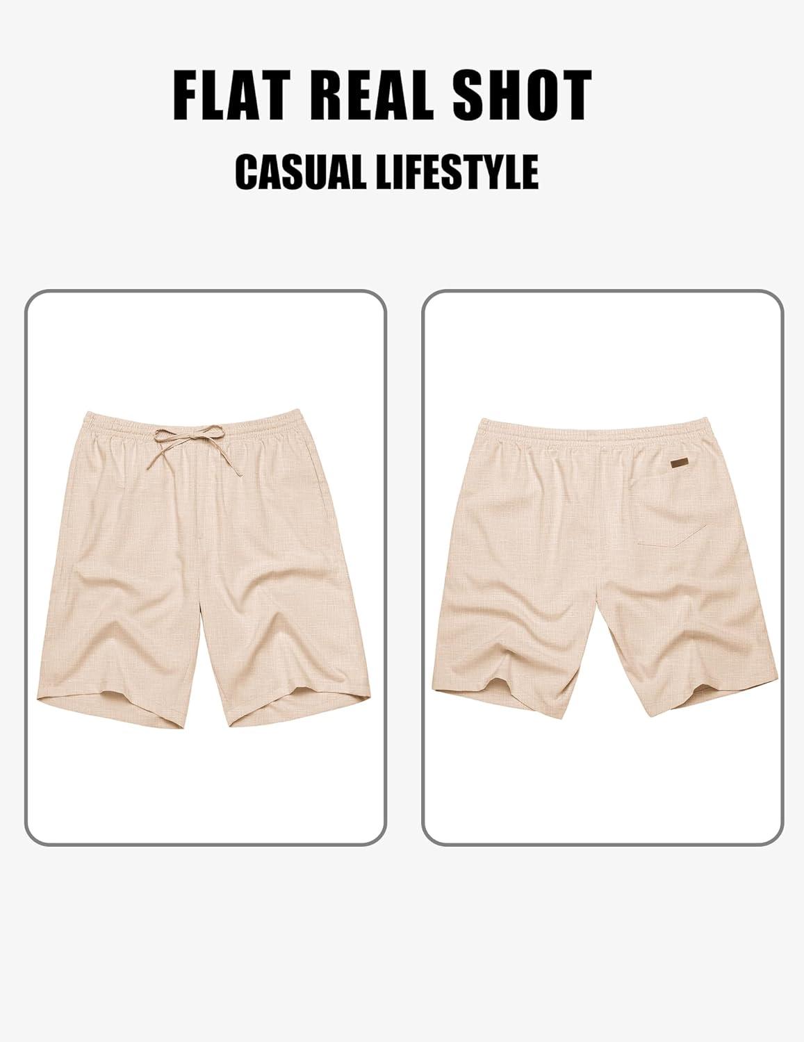 COOFANDY Mens Linen Shorts 9″ Elastic Waist Drawstring Casual Shorts Lightweight Summer Beach Shorts(Beige)