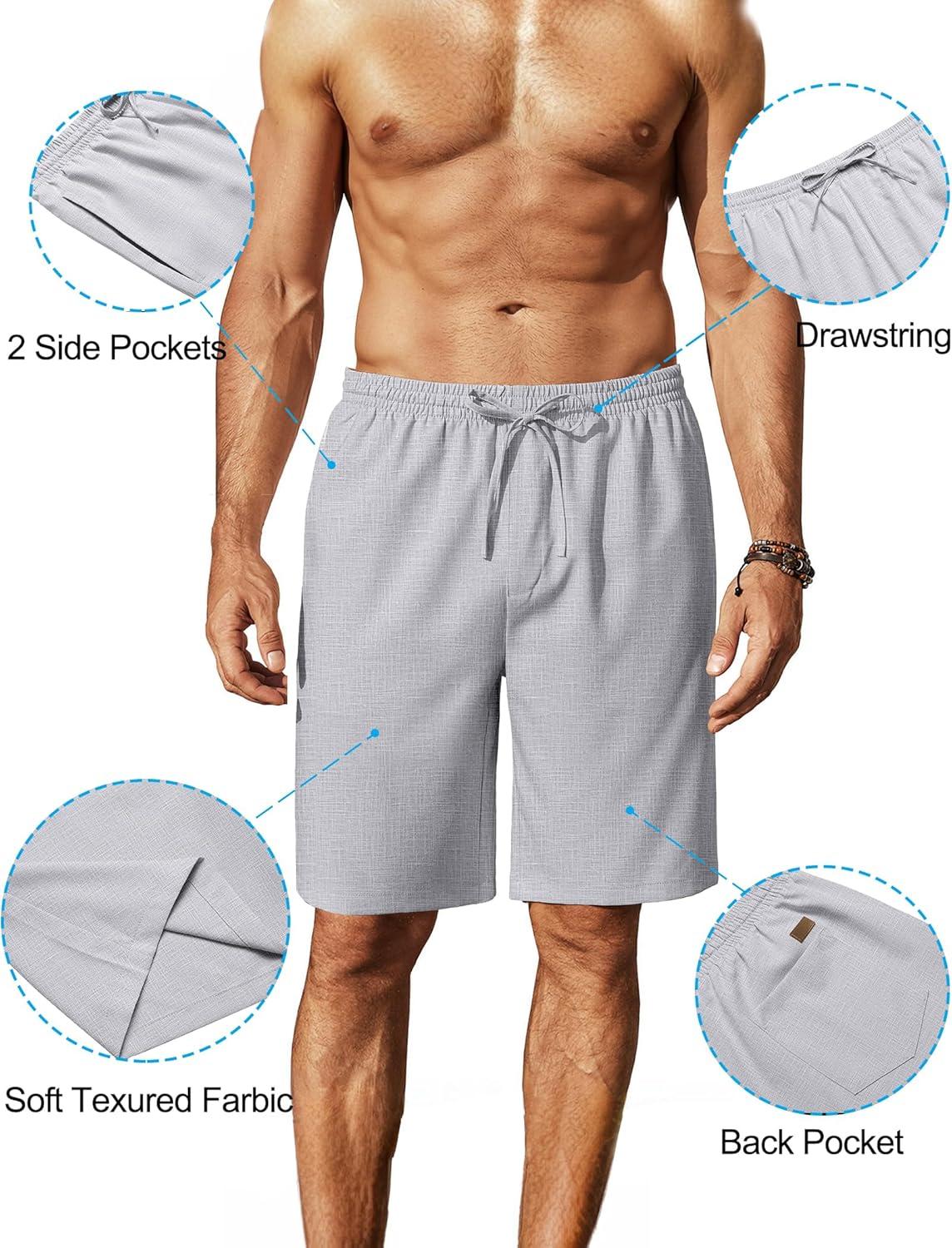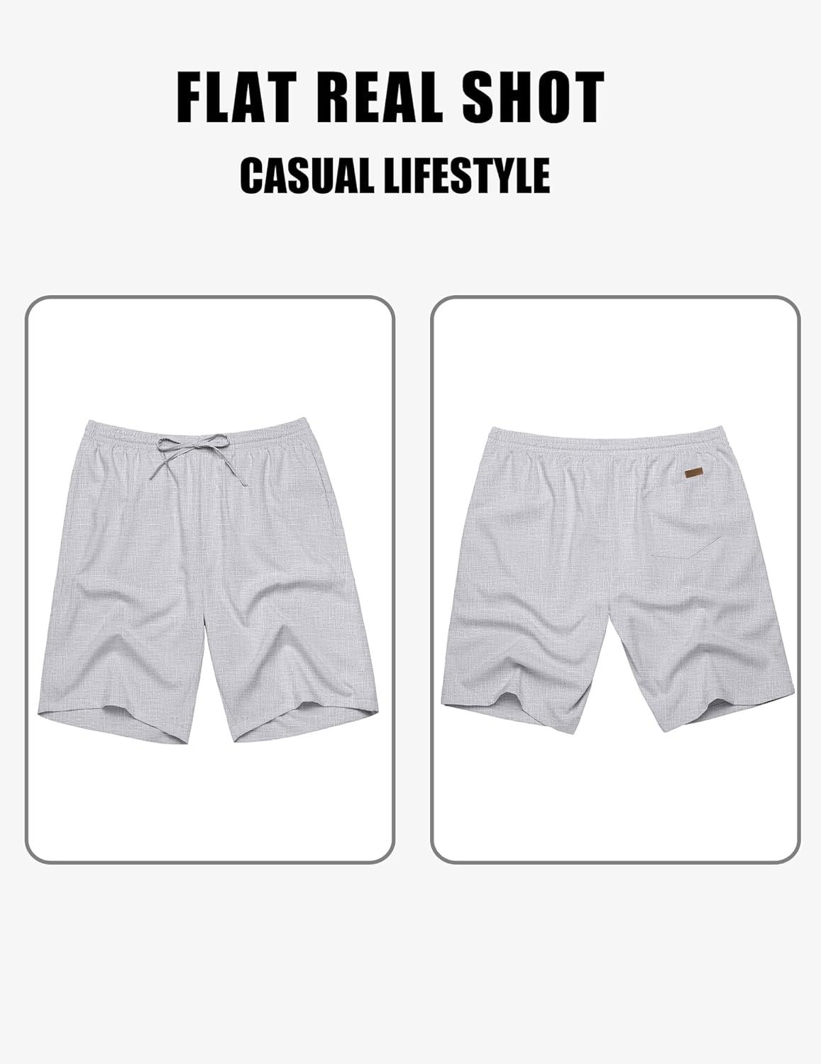COOFANDY Mens Linen Shorts 9″ Elastic Waist Drawstring Casual Shorts Lightweight Summer Beach Shorts(Light Grey)
