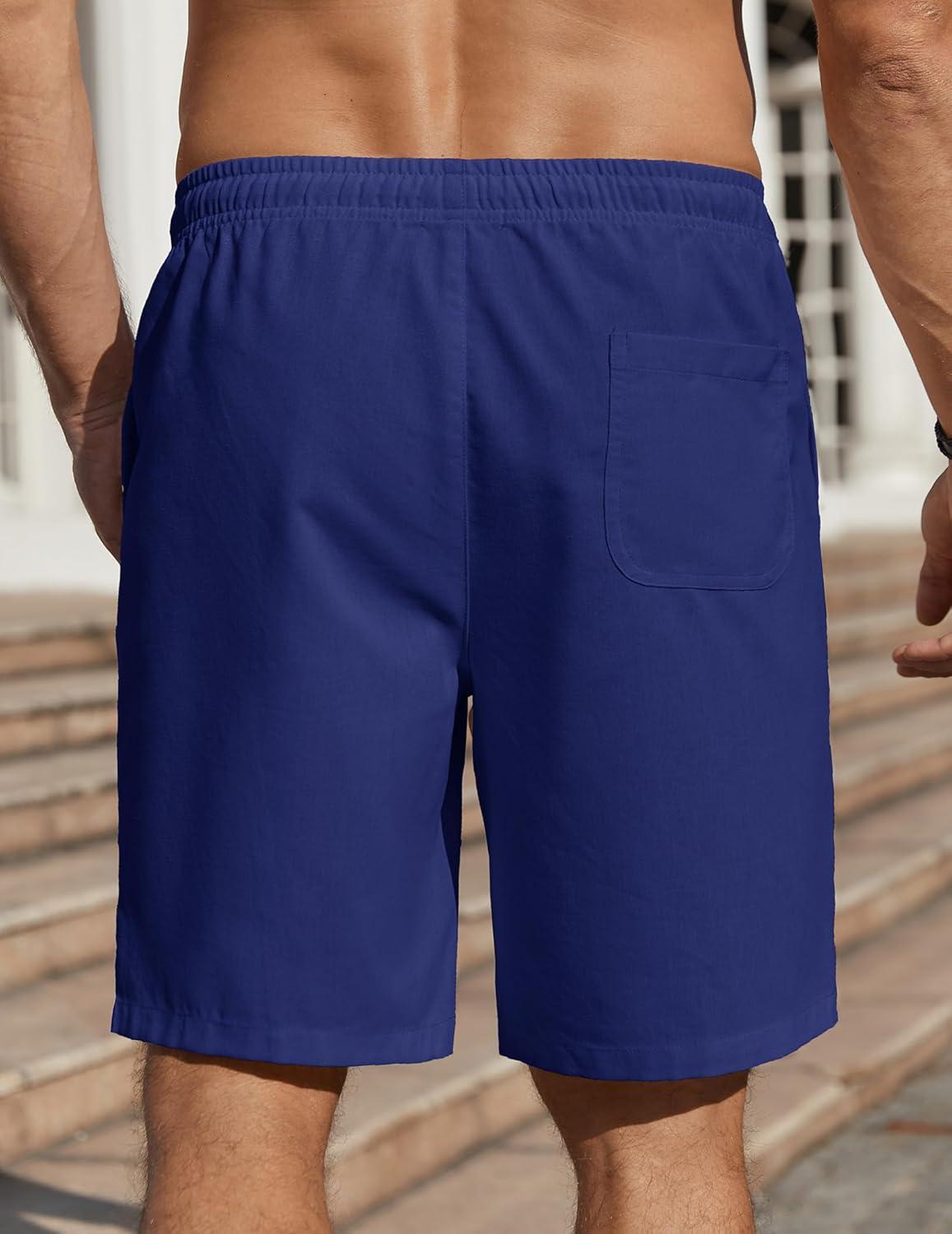COOFANDY Men’s Linen Shorts Casual Beach Shorts 9 inch Inseam Elastic Waist Drawstring Summer Shorts(Cobalt Blue)