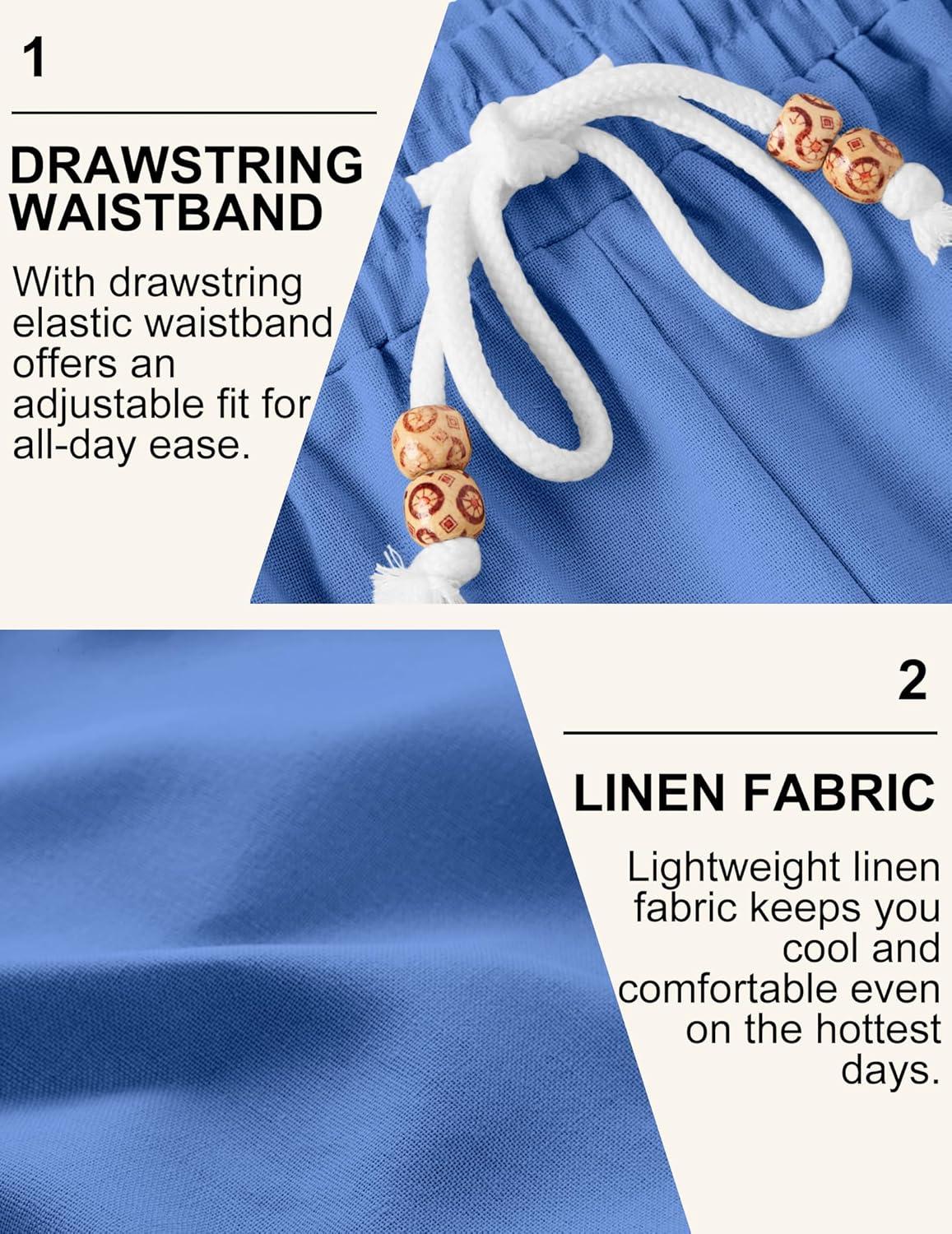 COOFANDY Mens Linen Shorts Casual Drawstring Elastic Waist Lightweight Summer Vacation Beach Shorts(Denim Blue)