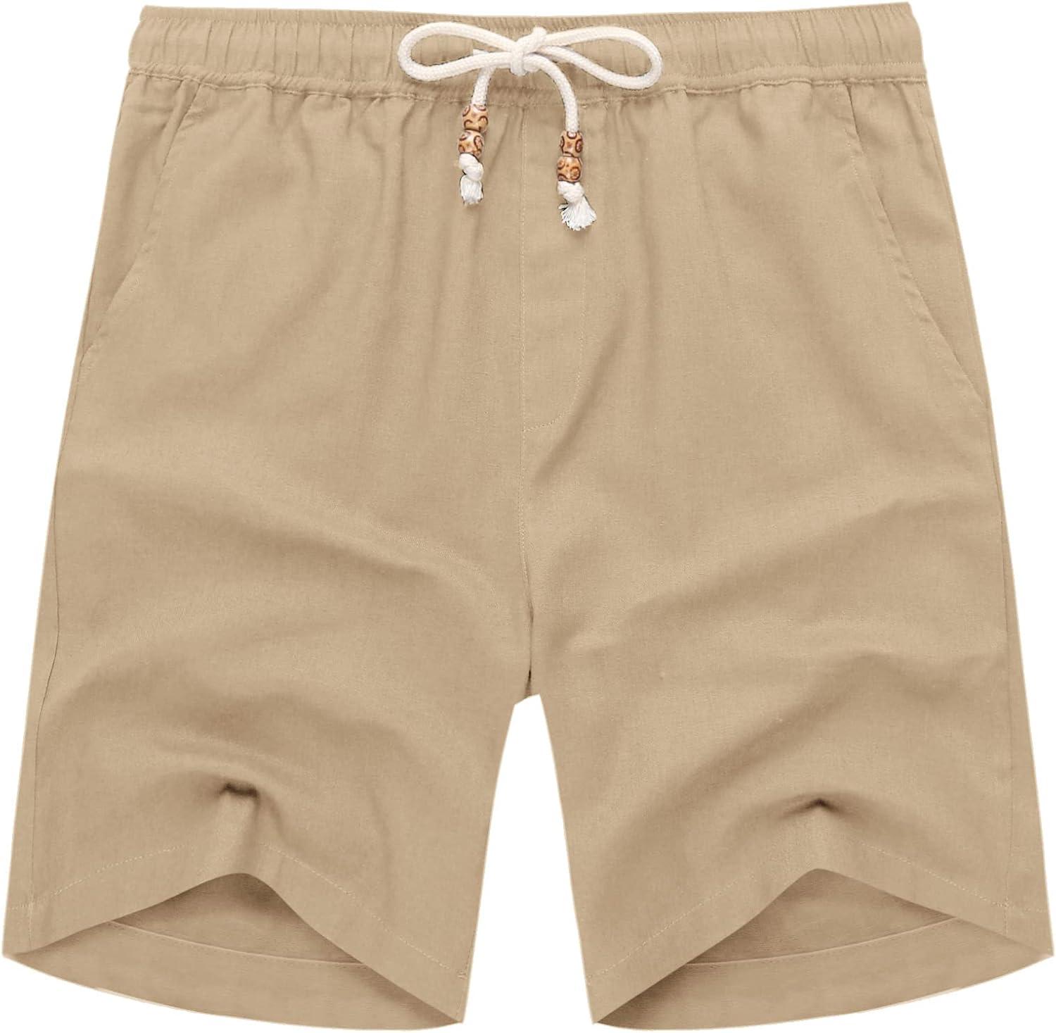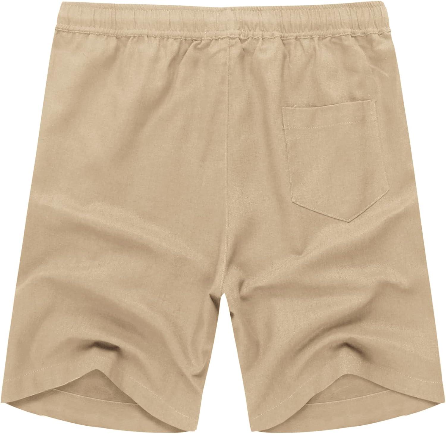 COOFANDY Men’s Linen Shorts Casual Elastic Waist Drawstring Summer Beach Shorts(1 Dark Khaki)
