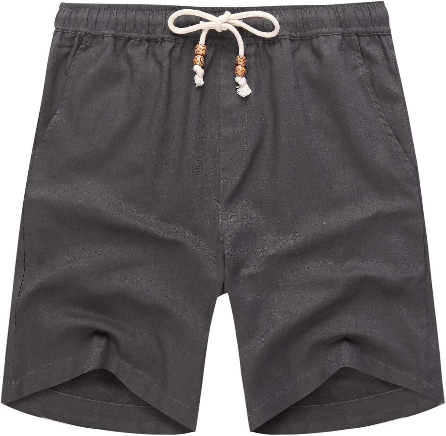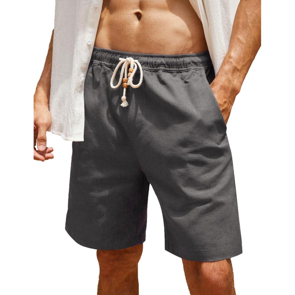 COOFANDY Men’s Linen Shorts Casual Elastic Waist Drawstring Summer Beach Shorts(Dark Grey)
