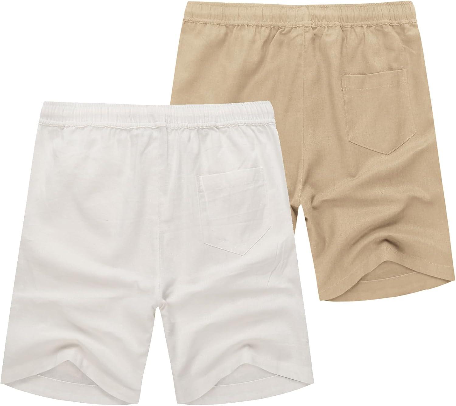 COOFANDY Men’s Linen Shorts Casual Elastic Waist Drawstring Summer Beach Shorts(White/ Dark Khaki)
