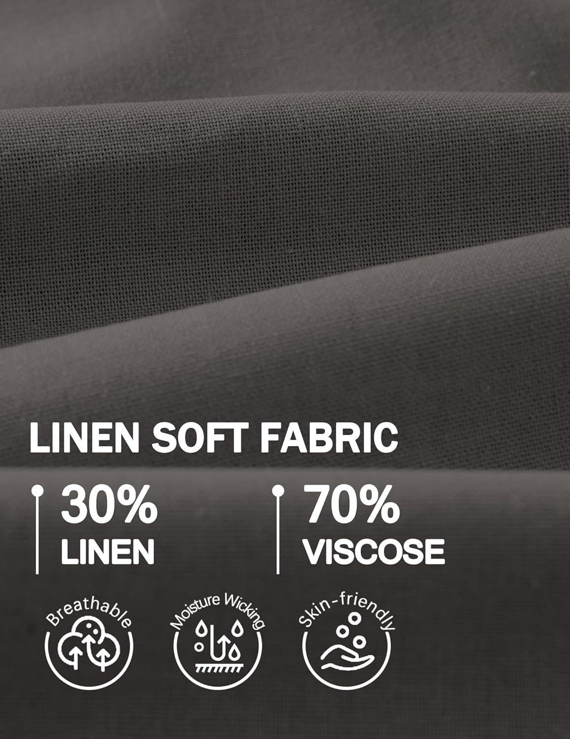COOFANDY Men’s Linen Shorts Casual Summer Beach Shorts Elastic Waist Drawstring Vacation Shorts with Pockets(Dark Grey)