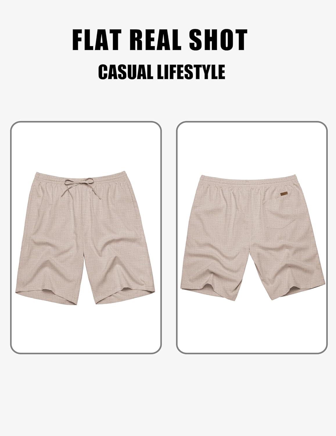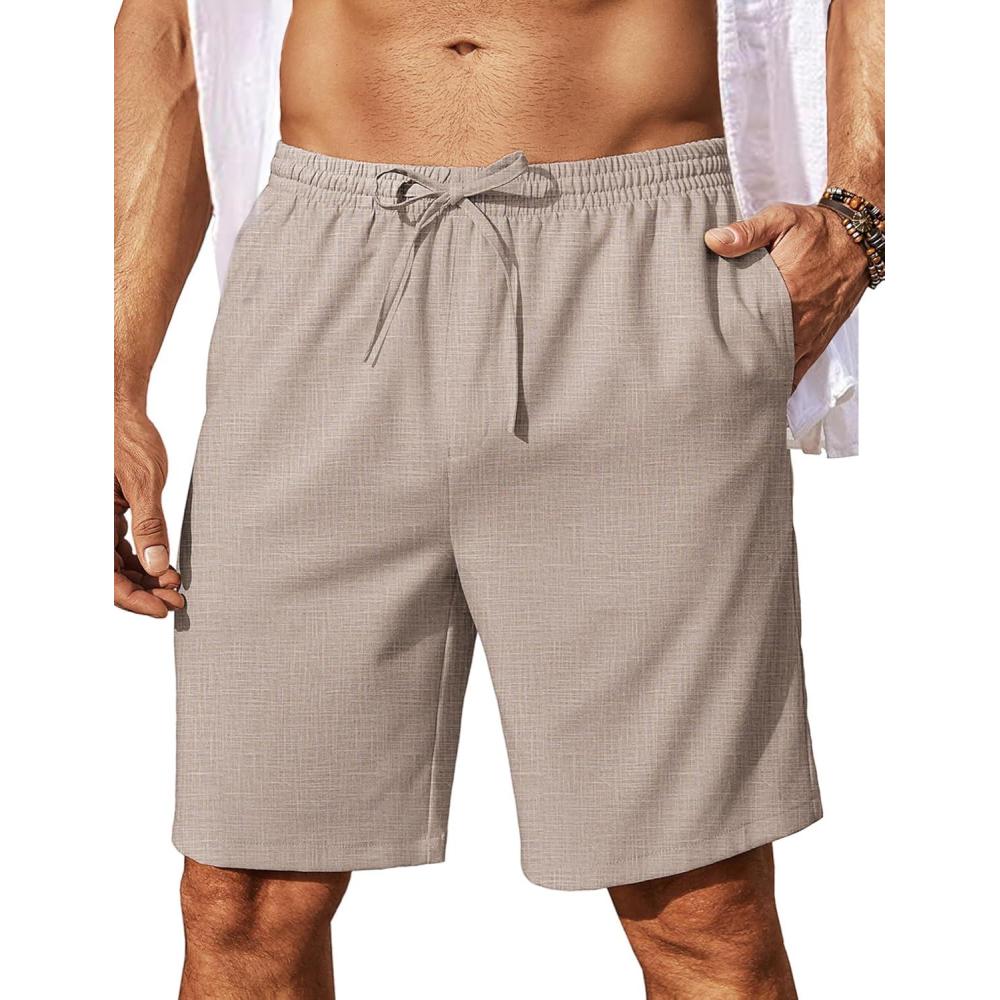 COOFANDY Men’s Linen Shorts Casual Summer Beach Shorts Elastic Waist Drawstring Vacation Shorts with Pockets(Khaki)