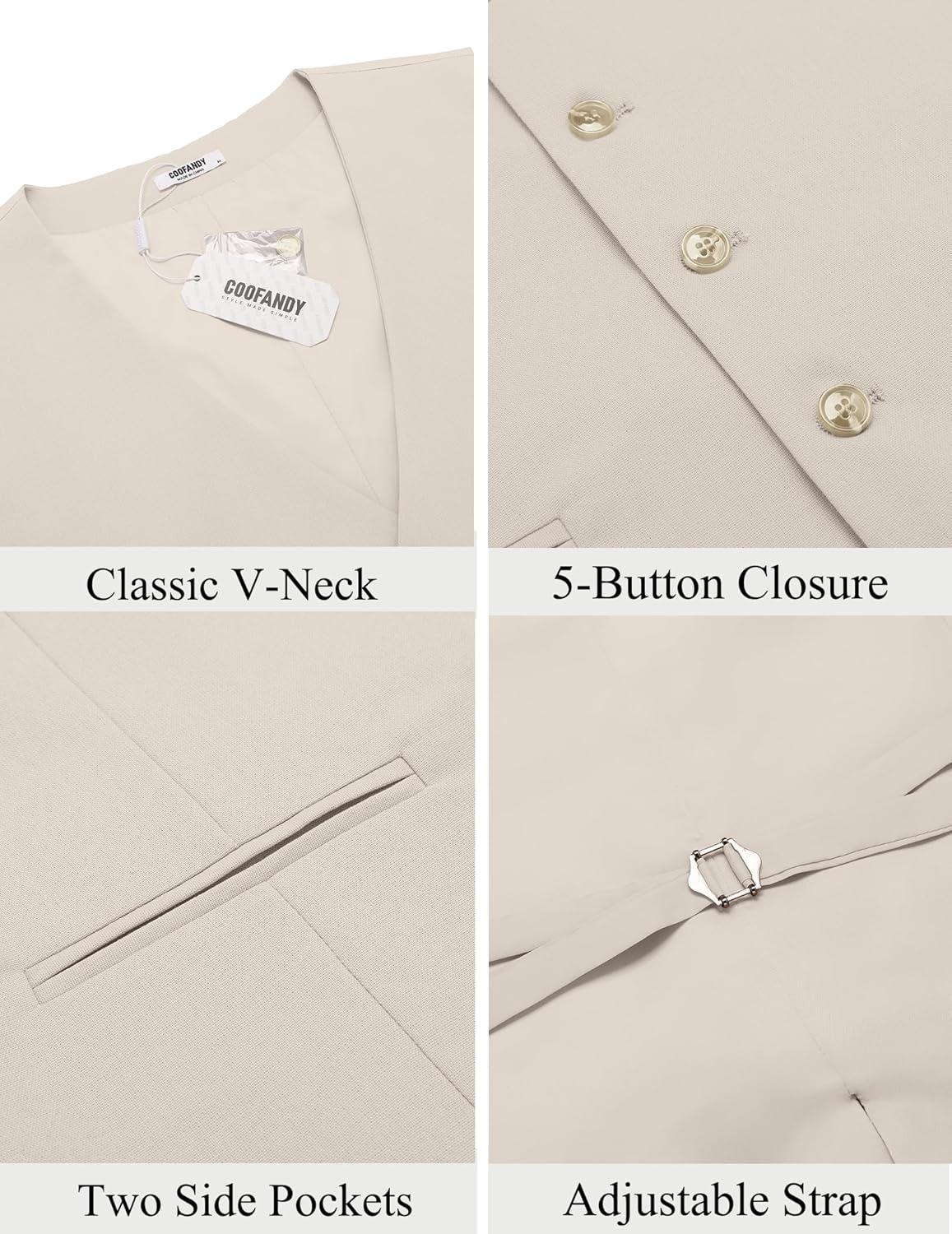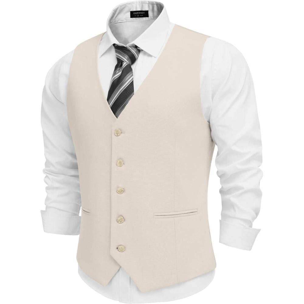 COOFANDY Men’s Linen Vest Casual Linen Slim Fit Suit Vests Dress Waistcoat Wedding Business Prom(Beige)