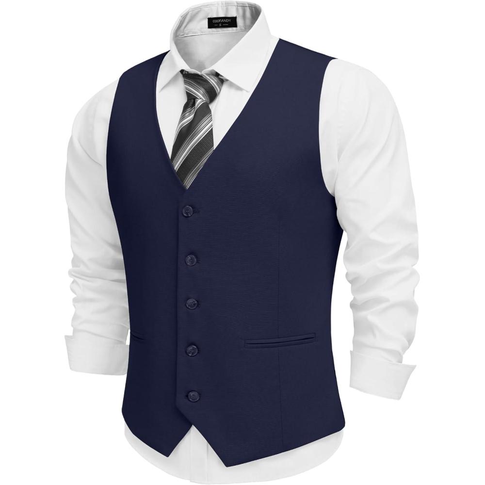 COOFANDY Men’s Linen Vest Casual Linen Slim Fit Suit Vests Dress Waistcoat Wedding Business Prom(Navy Blue)