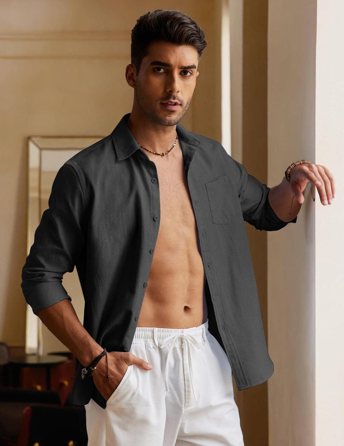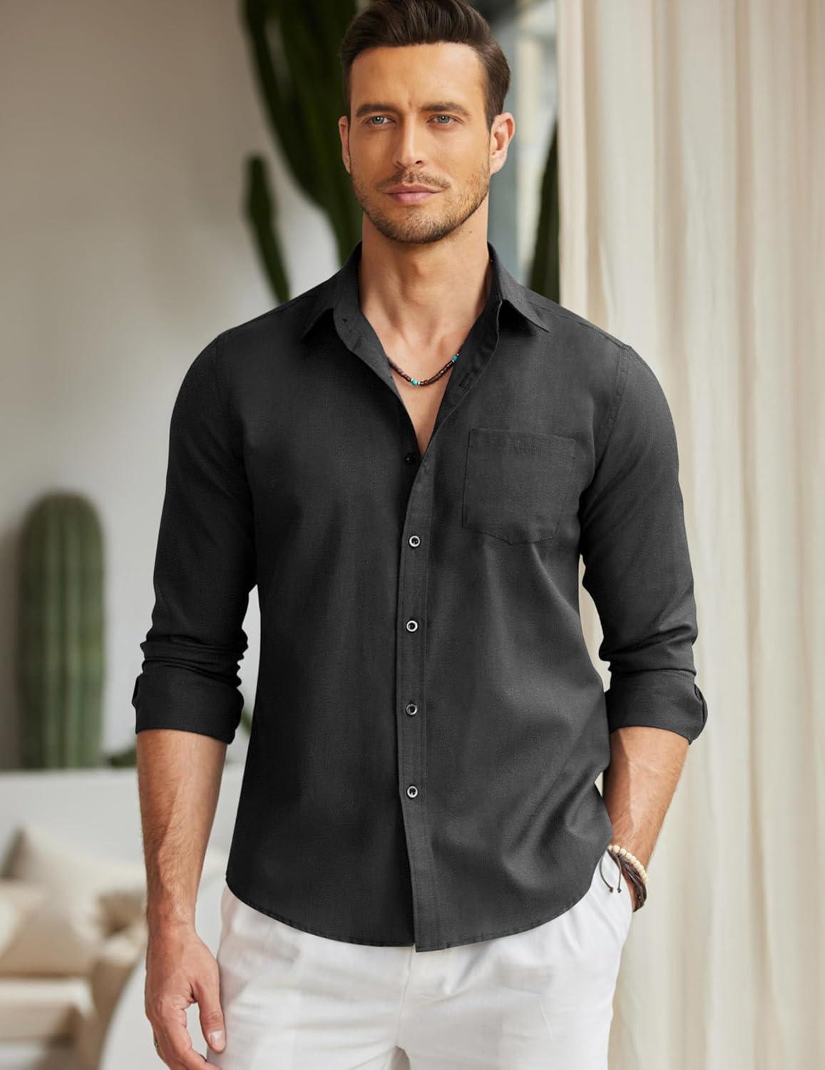 COOFANDY Men’s Long Sleeve Button Down Shirt Casual Untucked Regular-Fit Oxford Dress Shirts(Black)