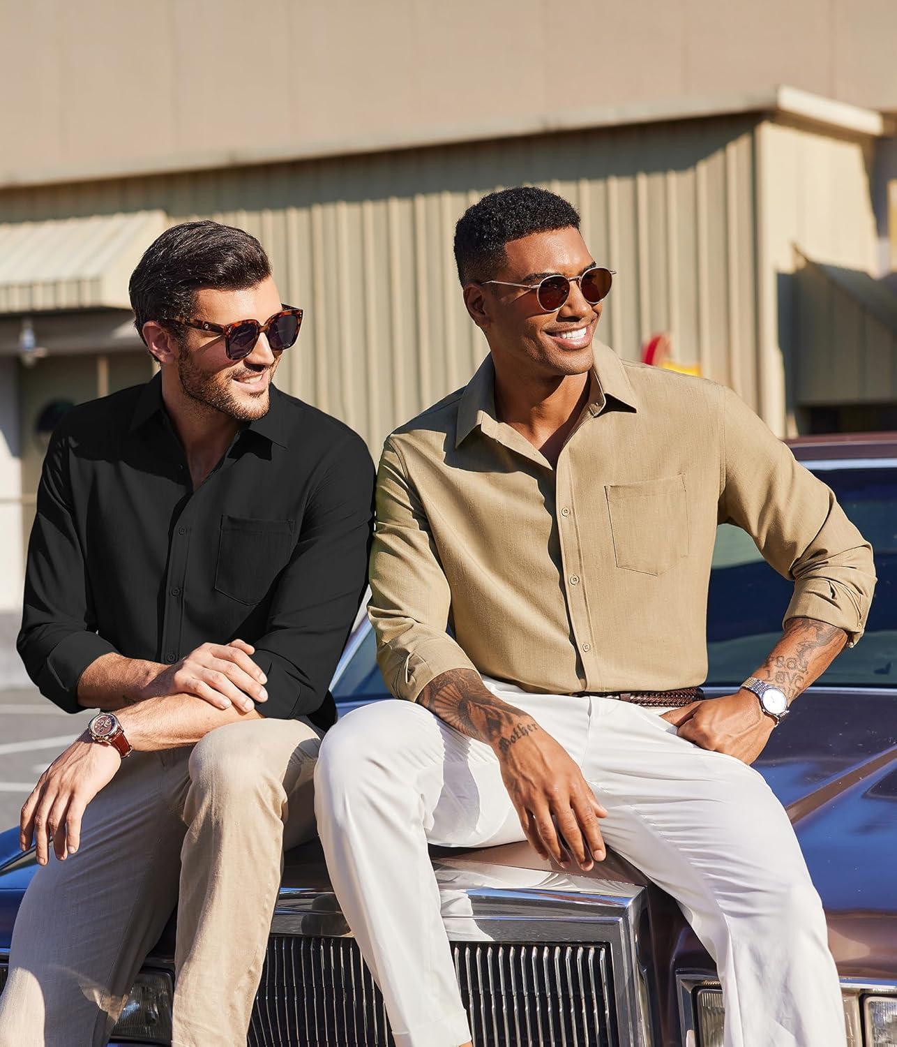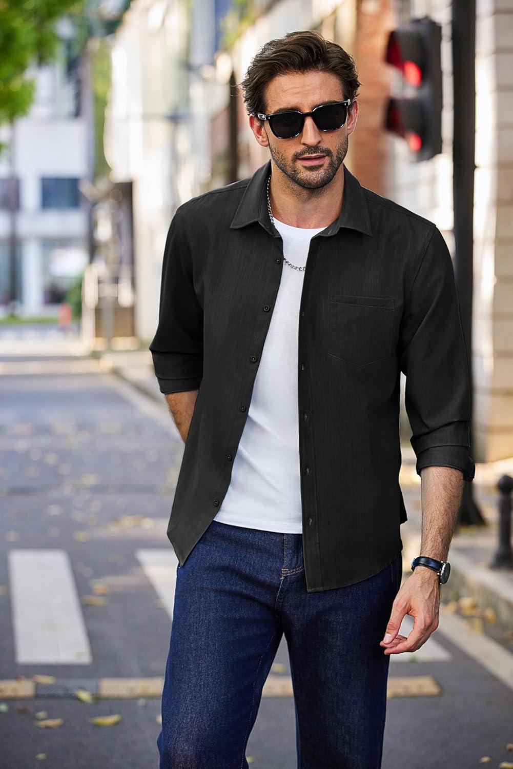COOFANDY Men’s Long Sleeve Button Down Shirt Wrinkle Free Untucked Dress Shirt Casual Denim Shirt(Black)