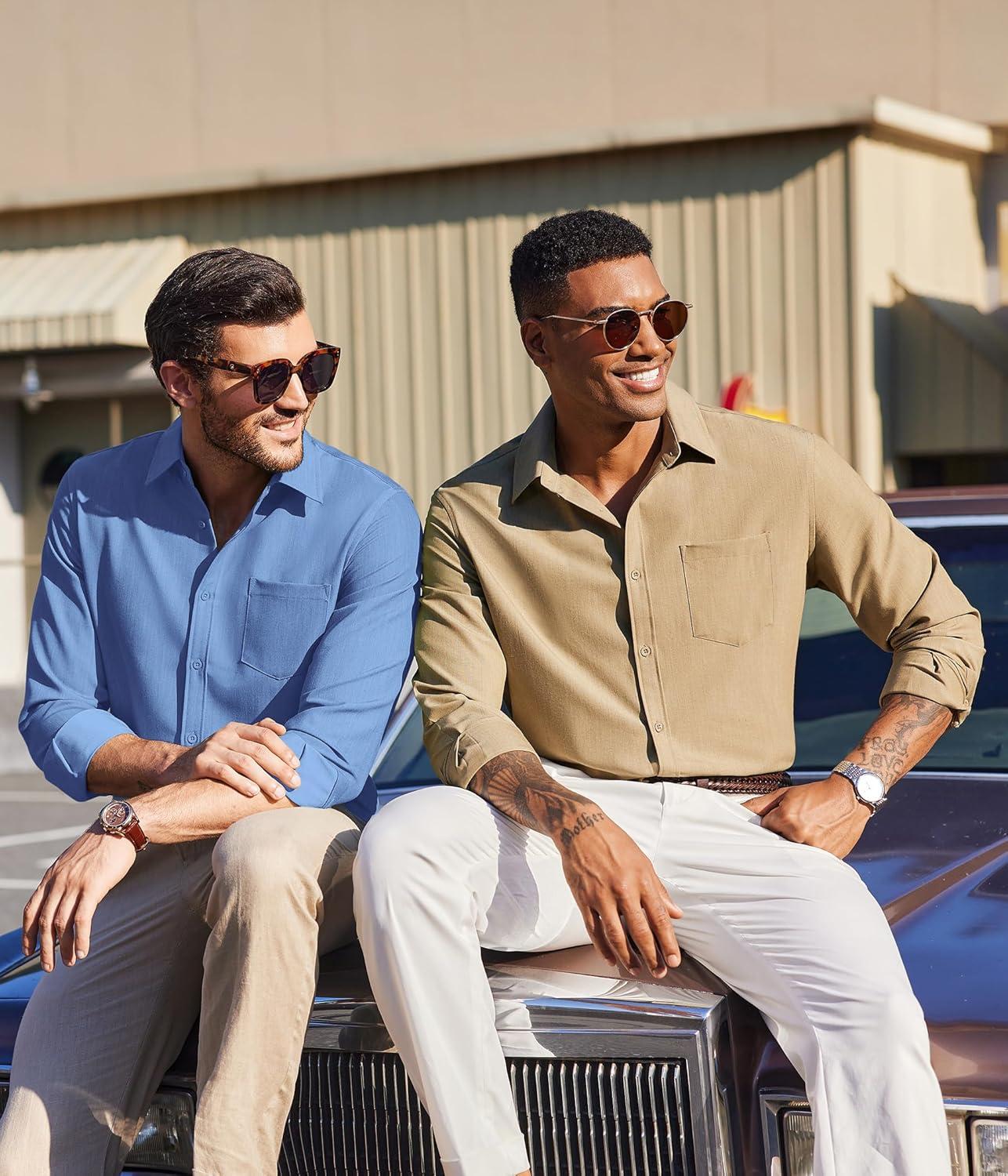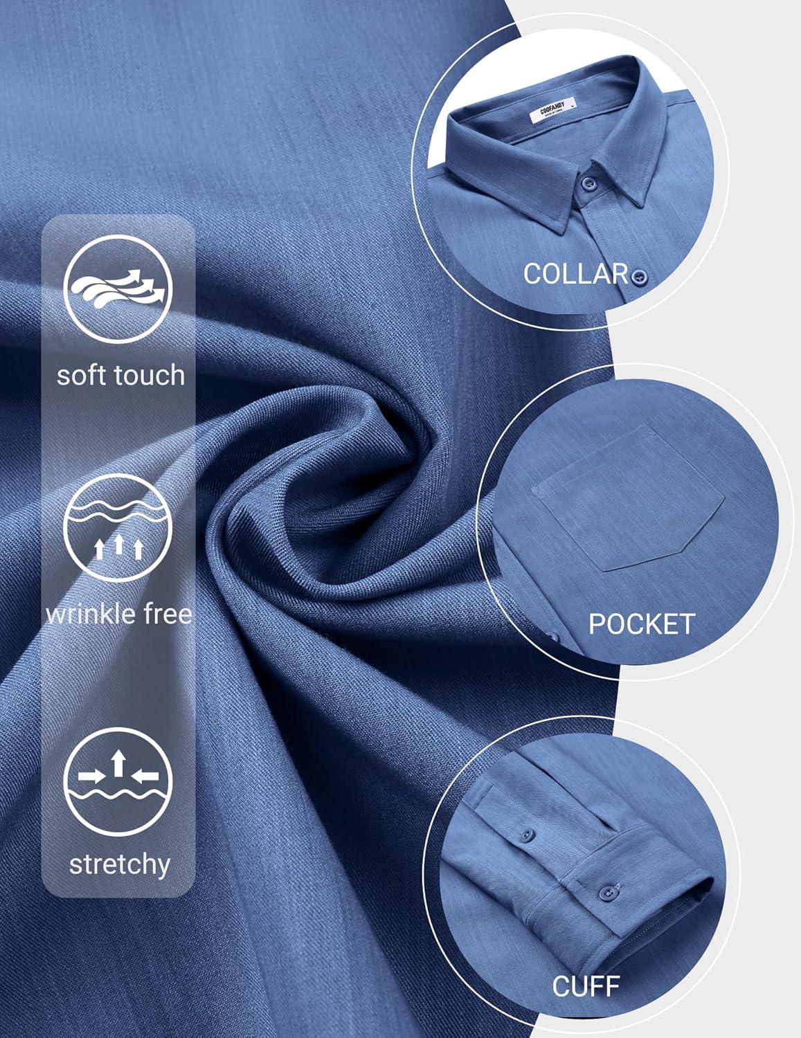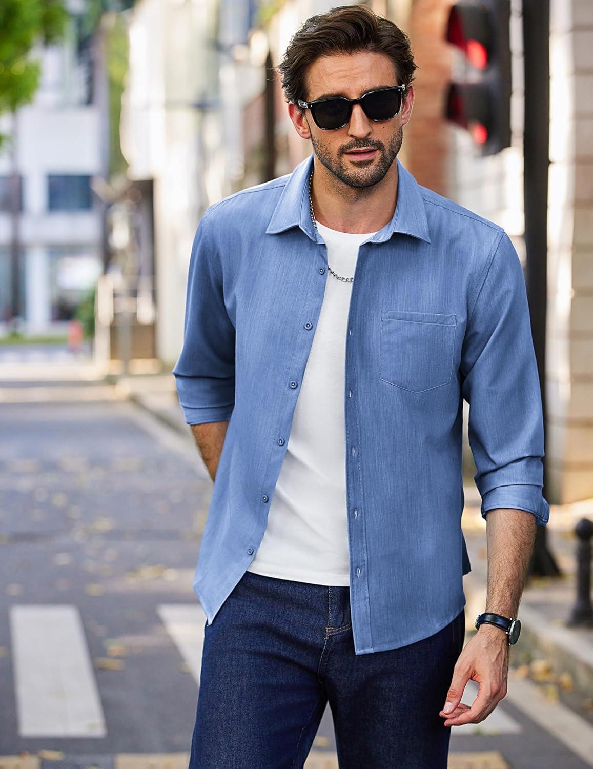 COOFANDY Men’s Long Sleeve Button Down Shirt Wrinkle Free Untucked Dress Shirt Casual Denim Shirt(Blue)