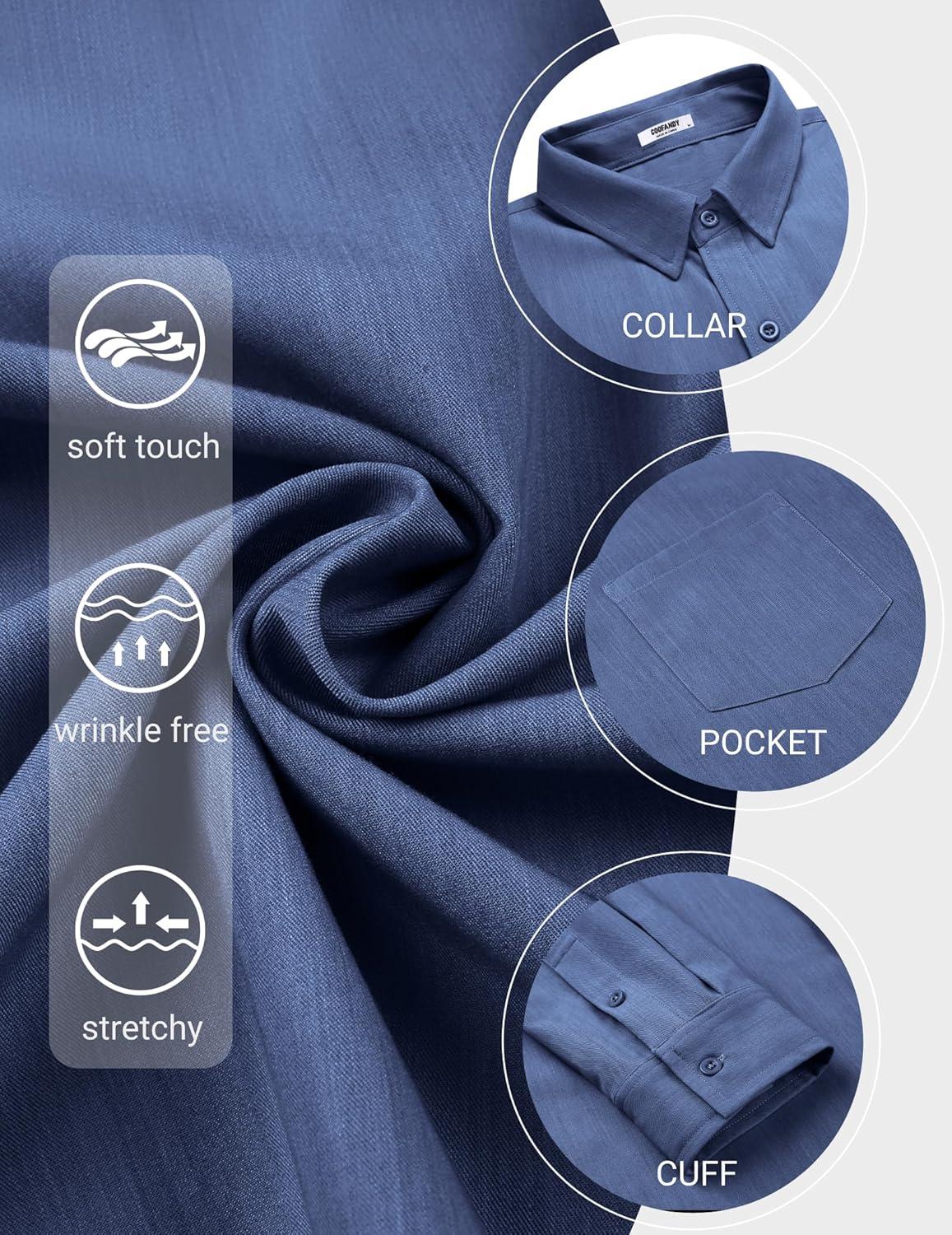 COOFANDY Men’s Long Sleeve Button Down Shirt Wrinkle Free Untucked Dress Shirt Casual Denim Shirt(Deep Blue)