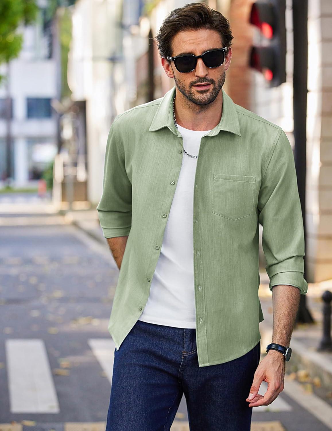 COOFANDY Men’s Long Sleeve Button Down Shirt Wrinkle Free Untucked Dress Shirt Casual Denim Shirt(Light Green)