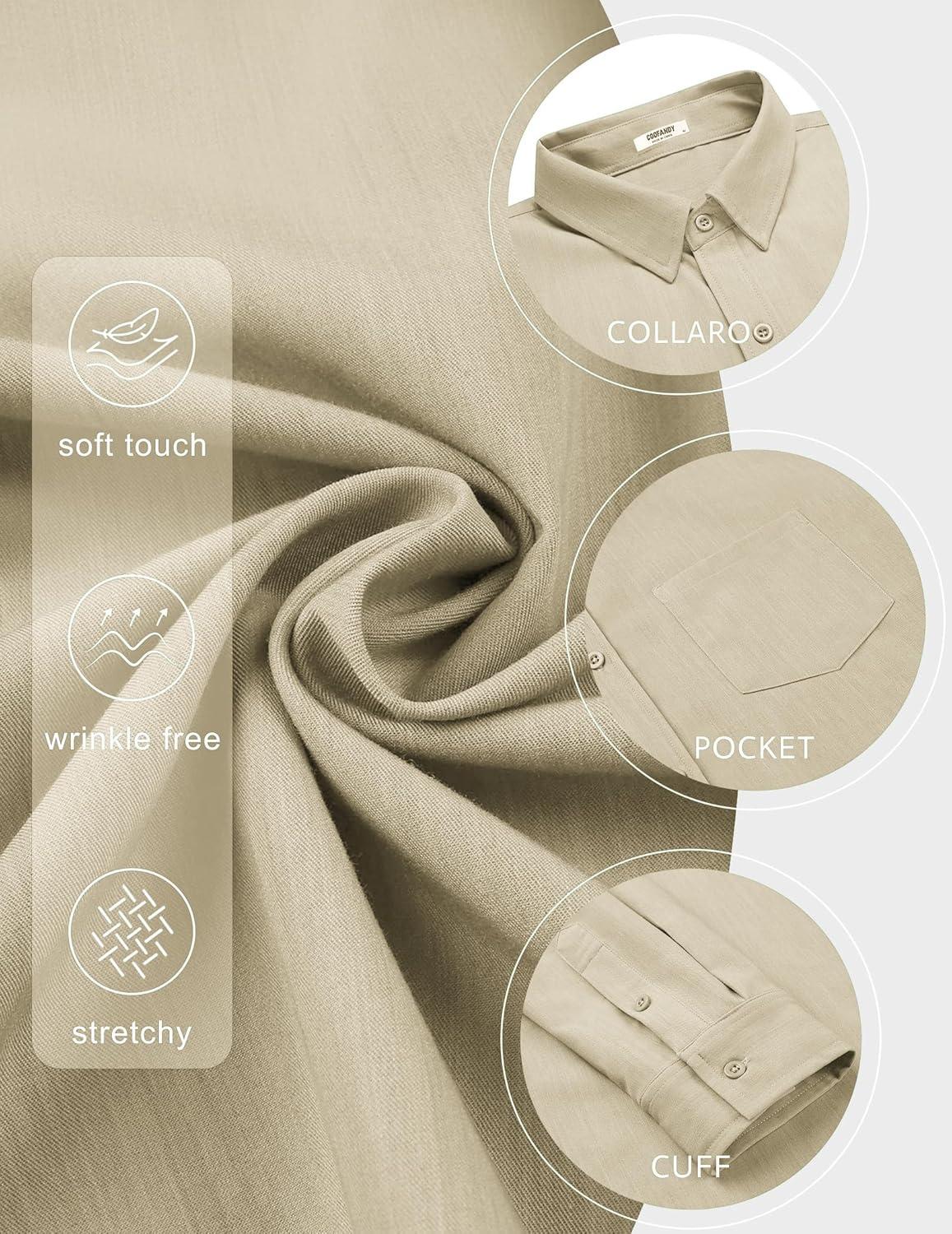 COOFANDY Men’s Long Sleeve Button Down Shirt Wrinkle Free Untucked Dress Shirt Casual Denim Shirt(Light Khaki)