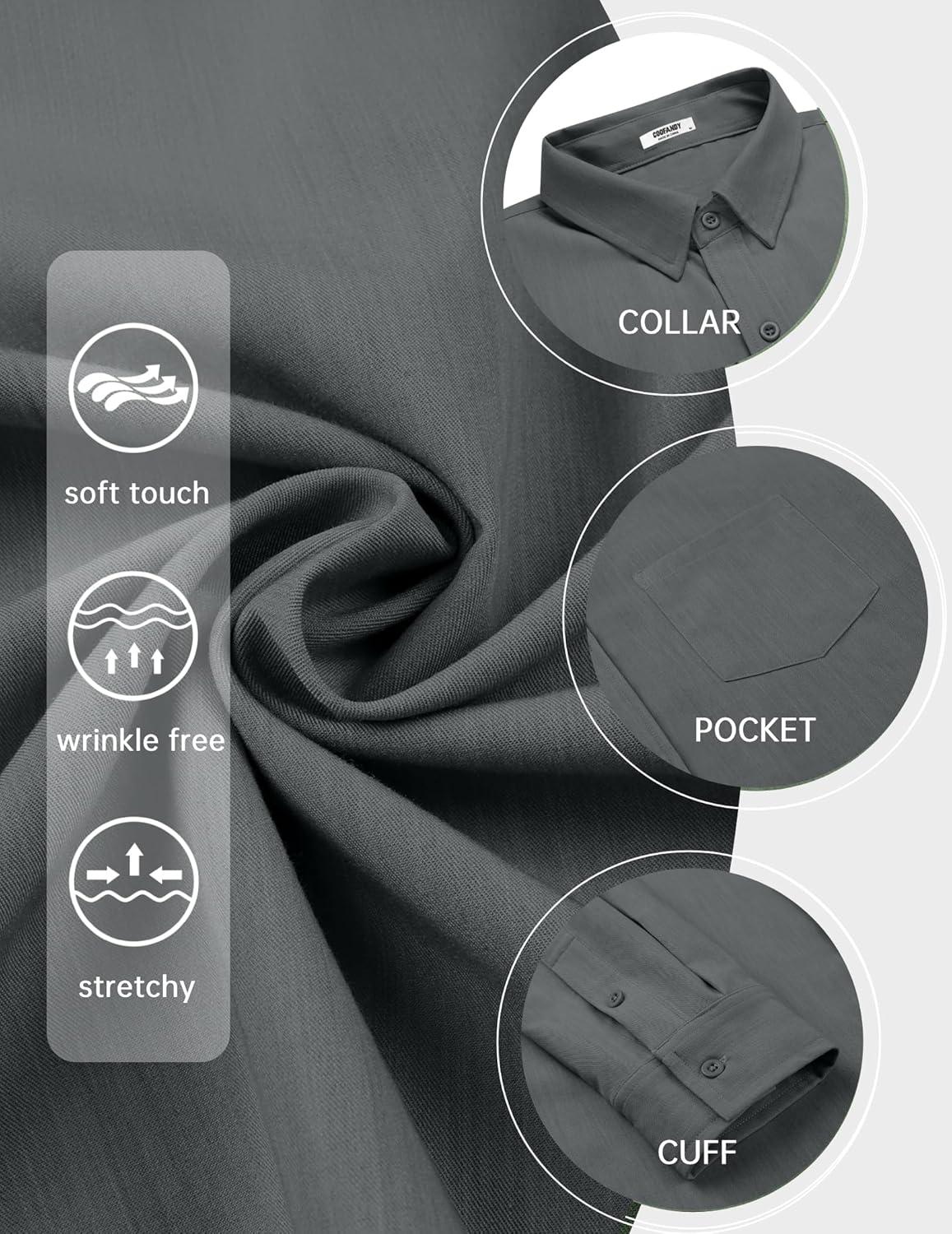 COOFANDY Men’s Long Sleeve Button Down Shirt Wrinkle Free Untucked Dress Shirt Casual Denim Shirt(Medium Grey)