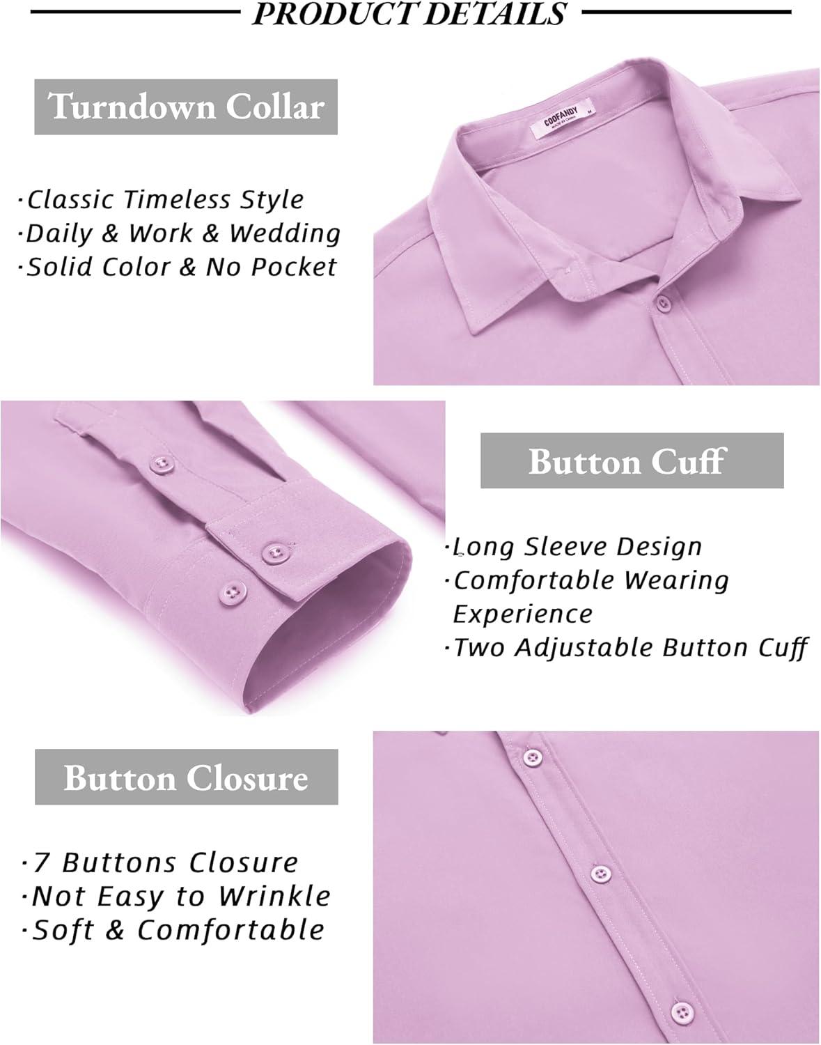 COOFANDY Men’s Long Sleeve Button Down Shirts Casual Untucked Dress Shirt Beach Wedding Shirts(Lavender)