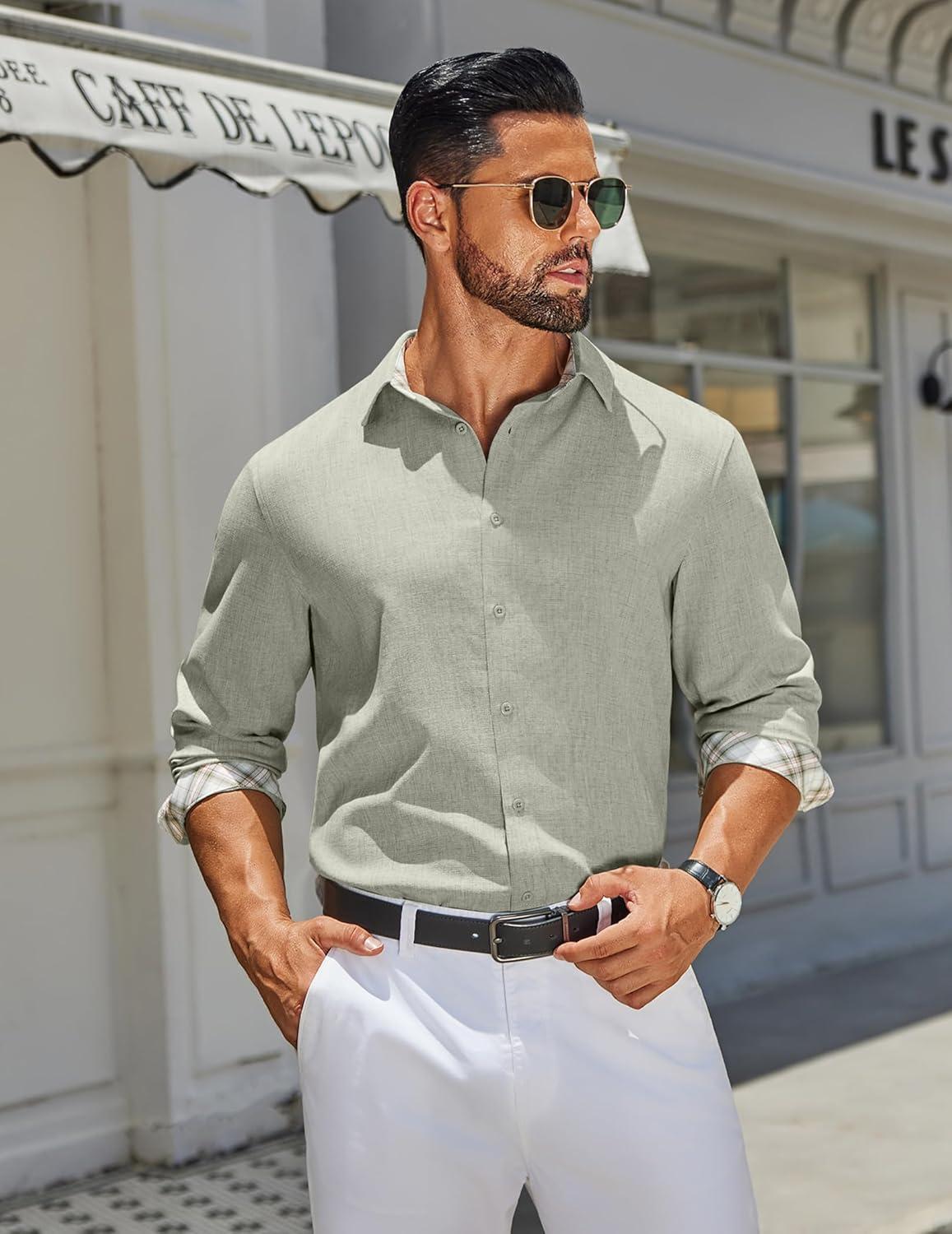 COOFANDY Men’s Long Sleeve Button Down Shirts Casual Untucked Shirt Regular Fit Dress Shirt(A-light Green)
