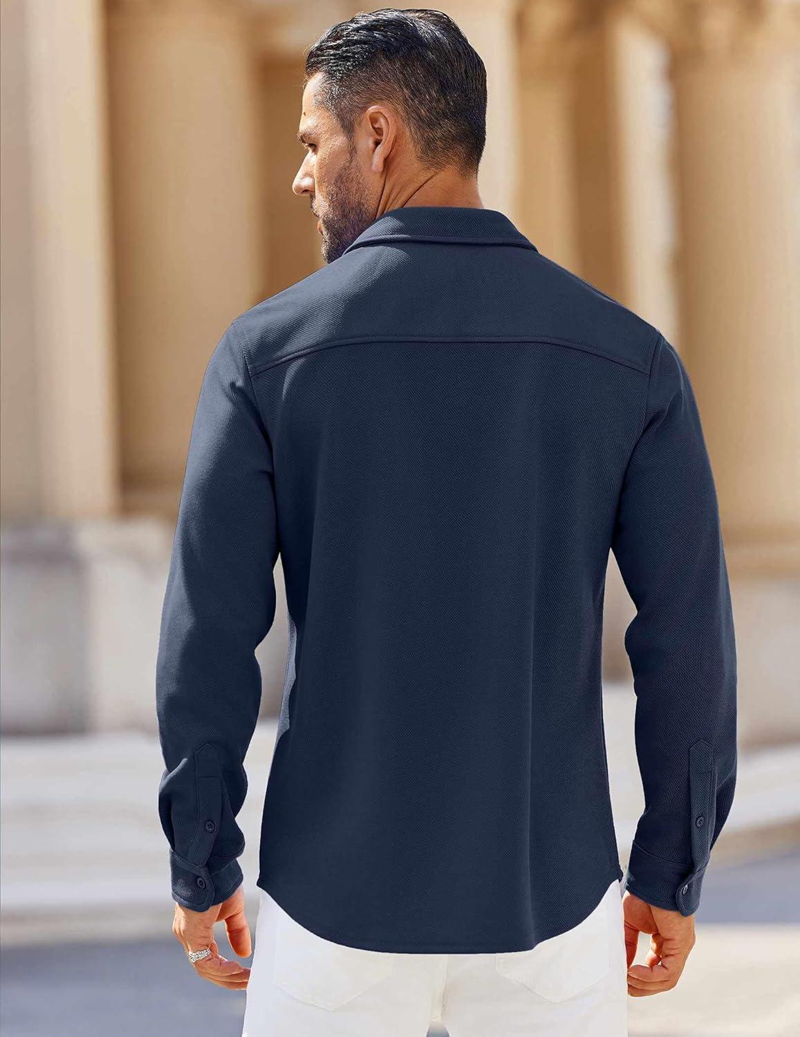 COOFANDY Mens Long Sleeve Button Down Shirts Wrinkle Free Shacket Jacket Stretch Casual Overshirt(Blue Purple)