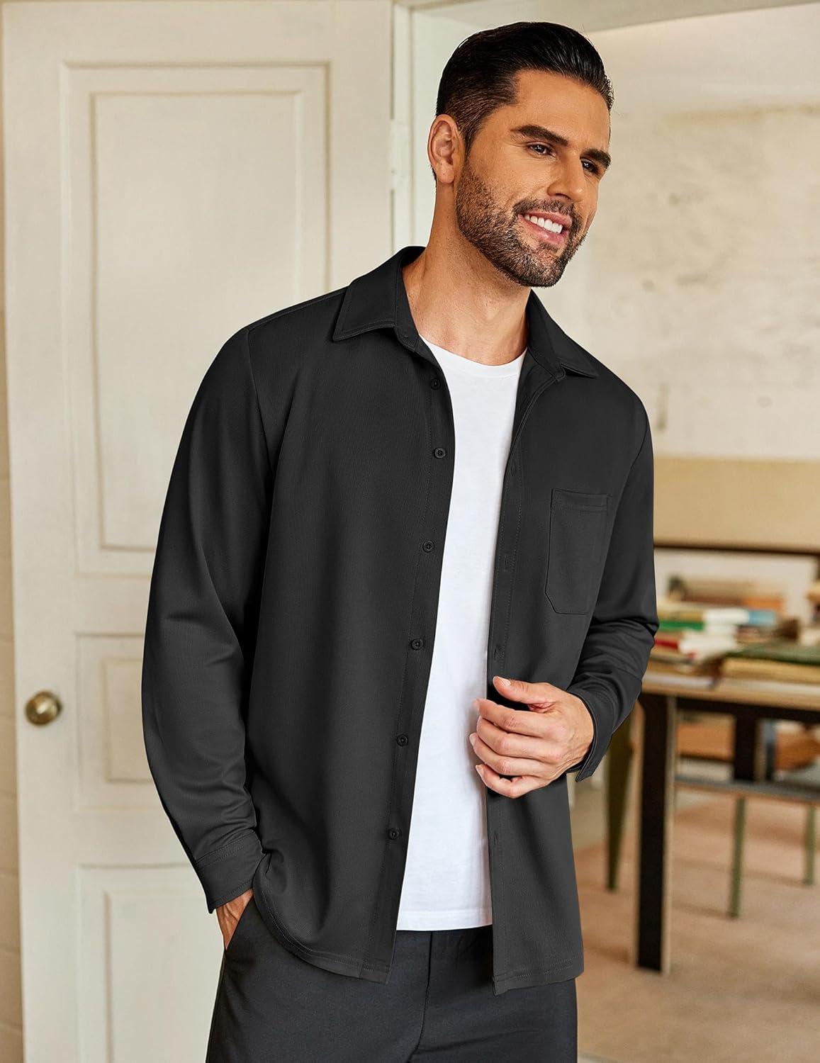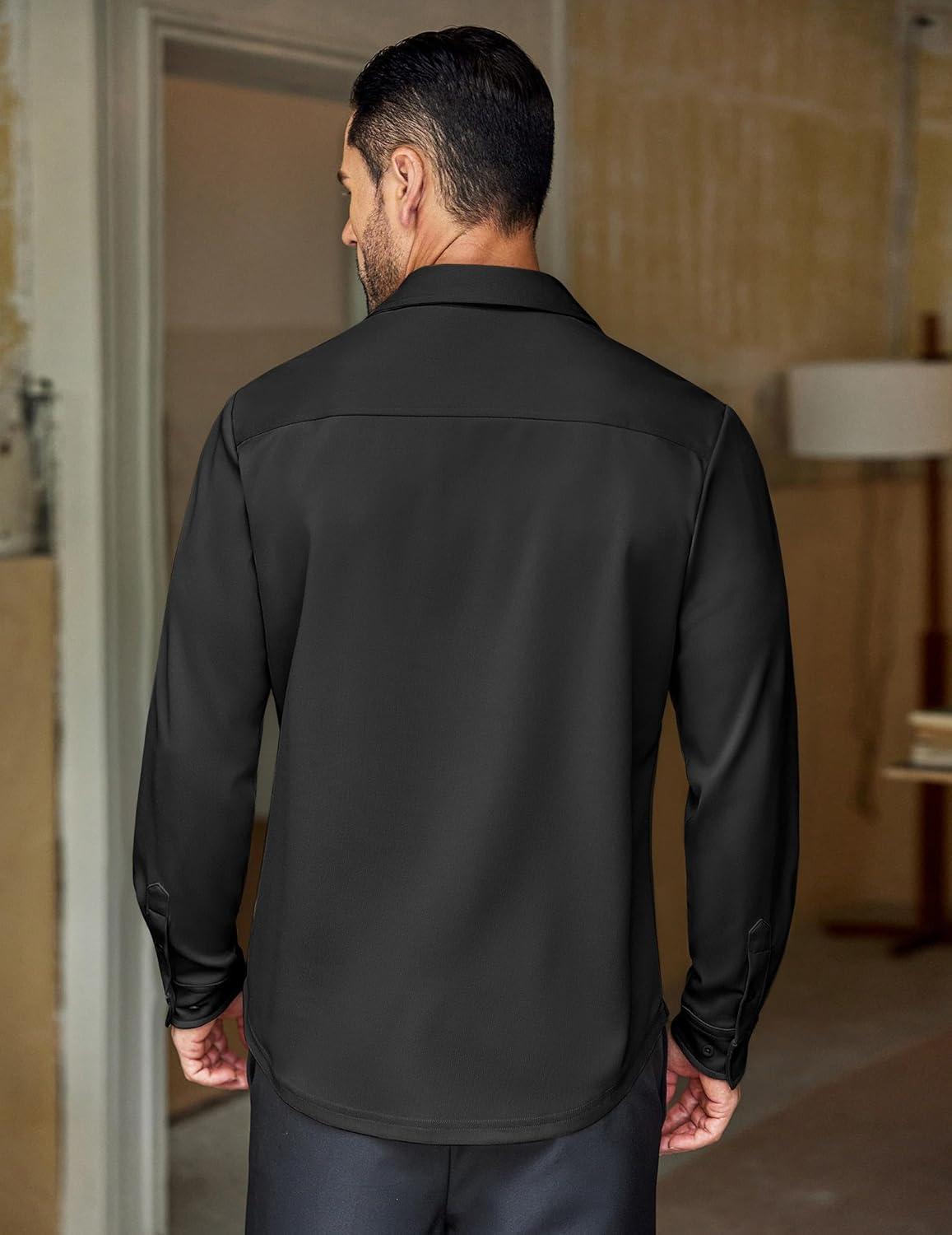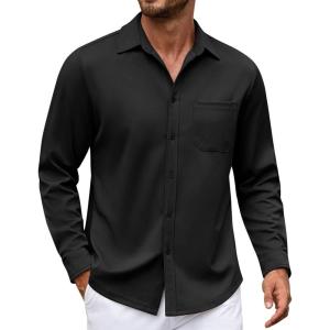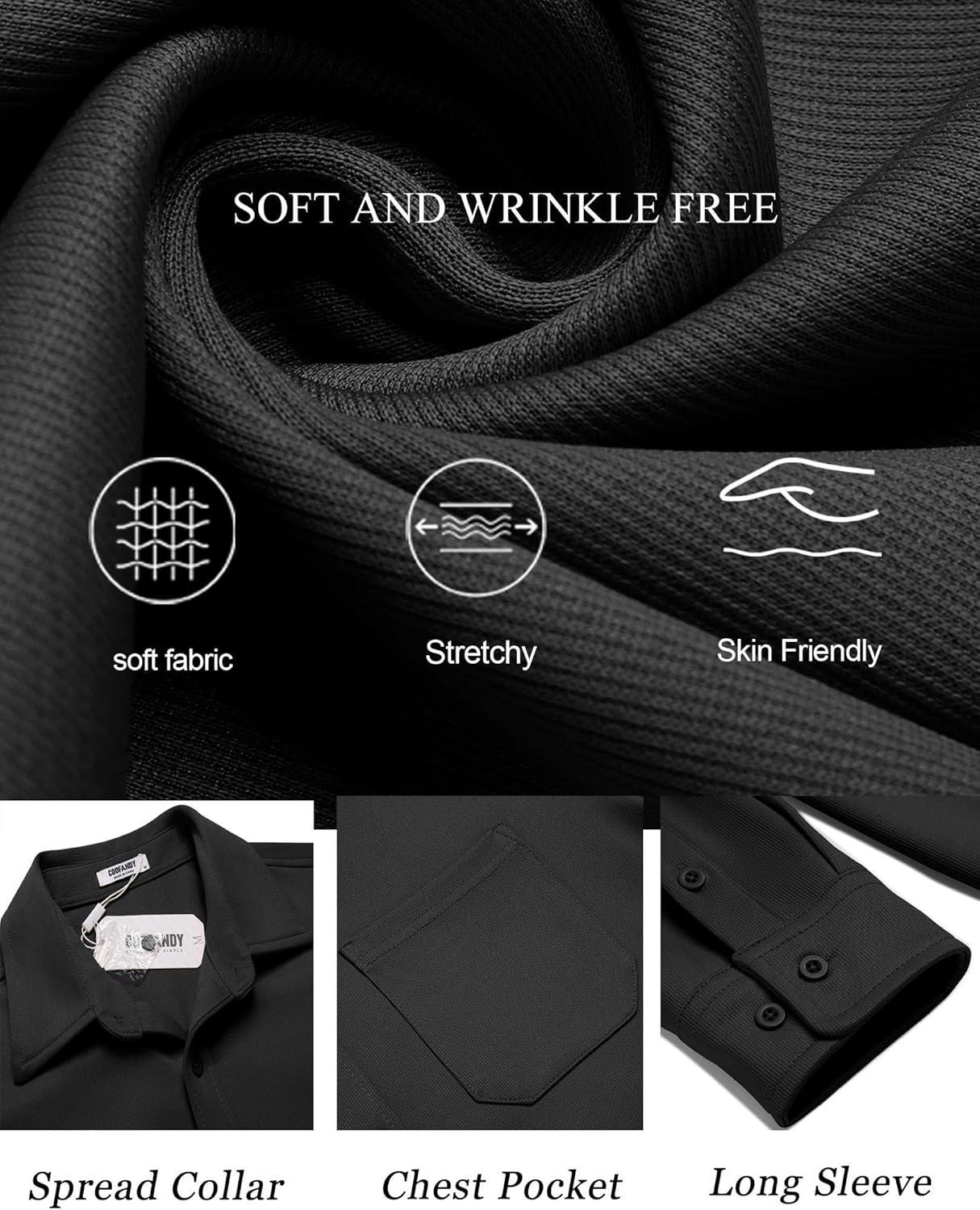 COOFANDY Mens Long Sleeve Casual Button Down Shirt Wrinkle Free Untucked Dress Shirts(Black)