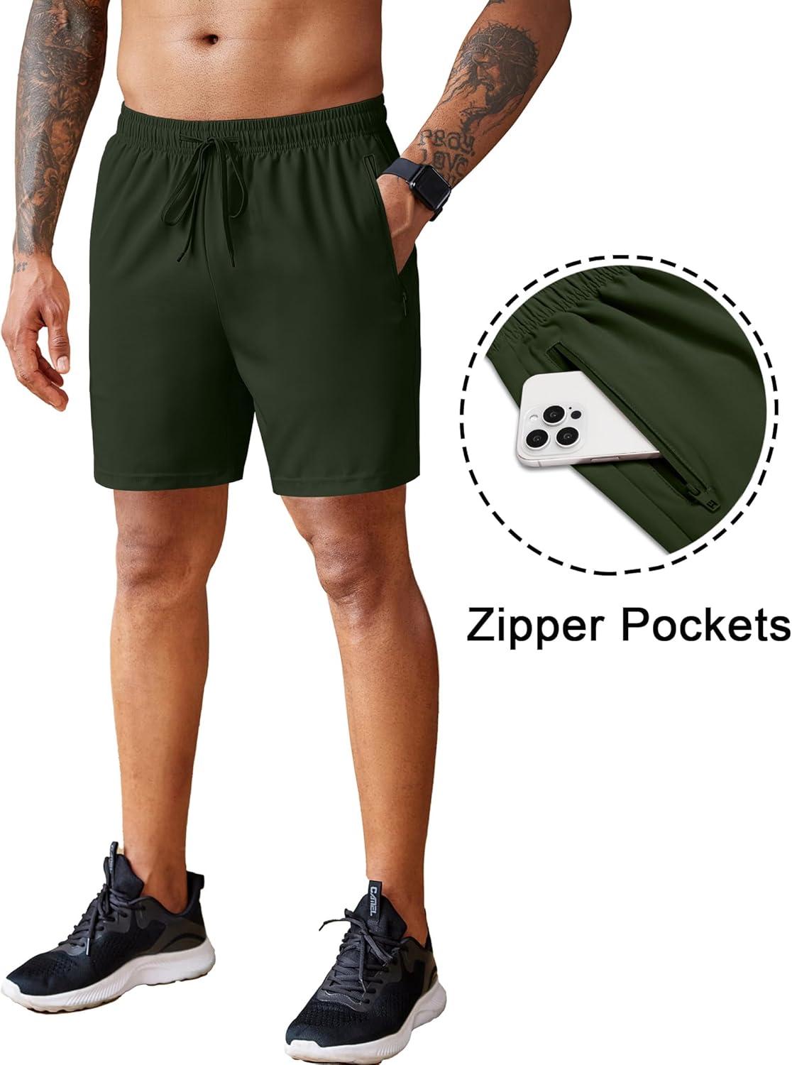 COOFANDY Men’s 2 Pack Workout Gym Shorts 7 Inch / 5 Inch Athletic Shorts Lightweight Casual Jogger Short with Zipper Pockets(Army Green / Black)