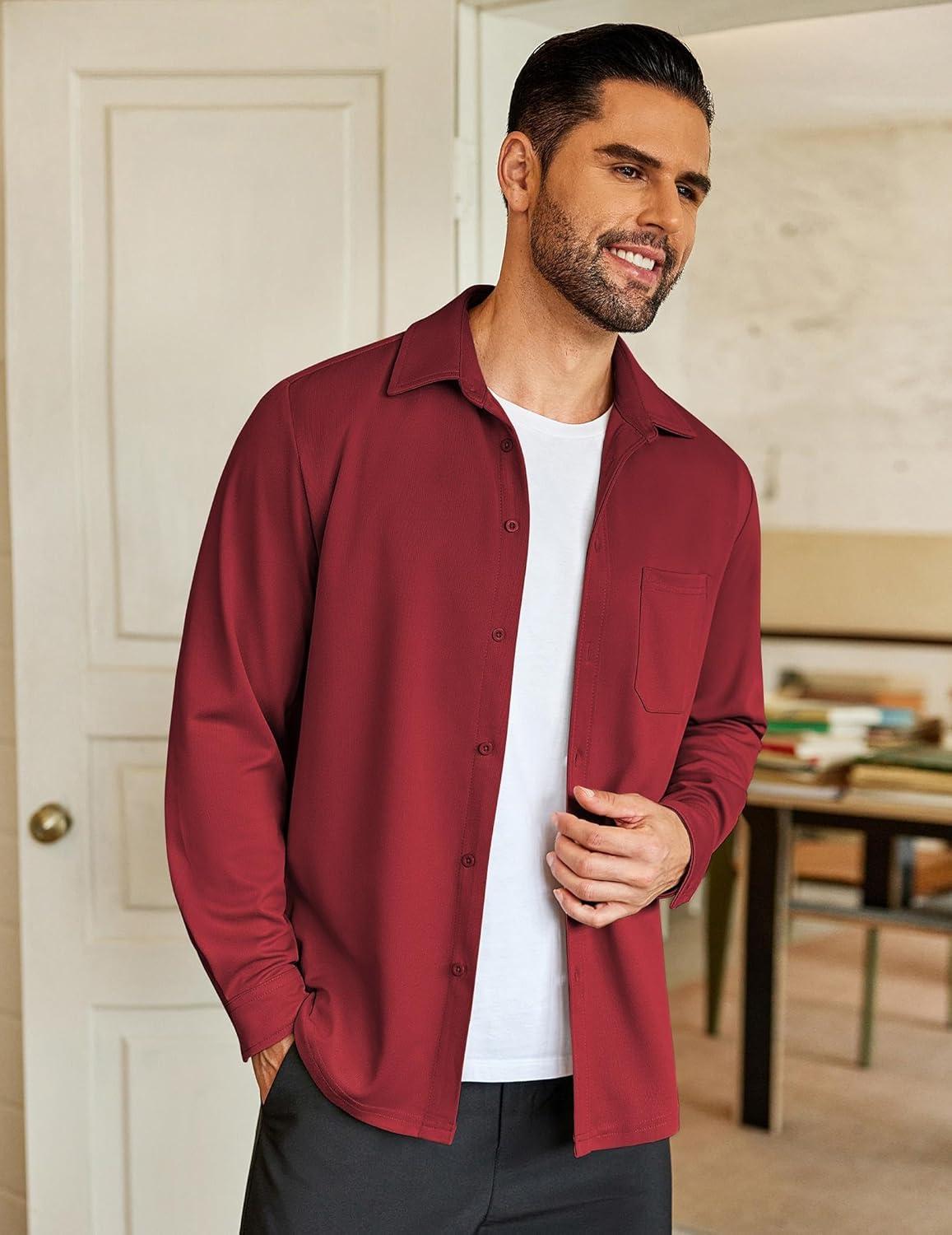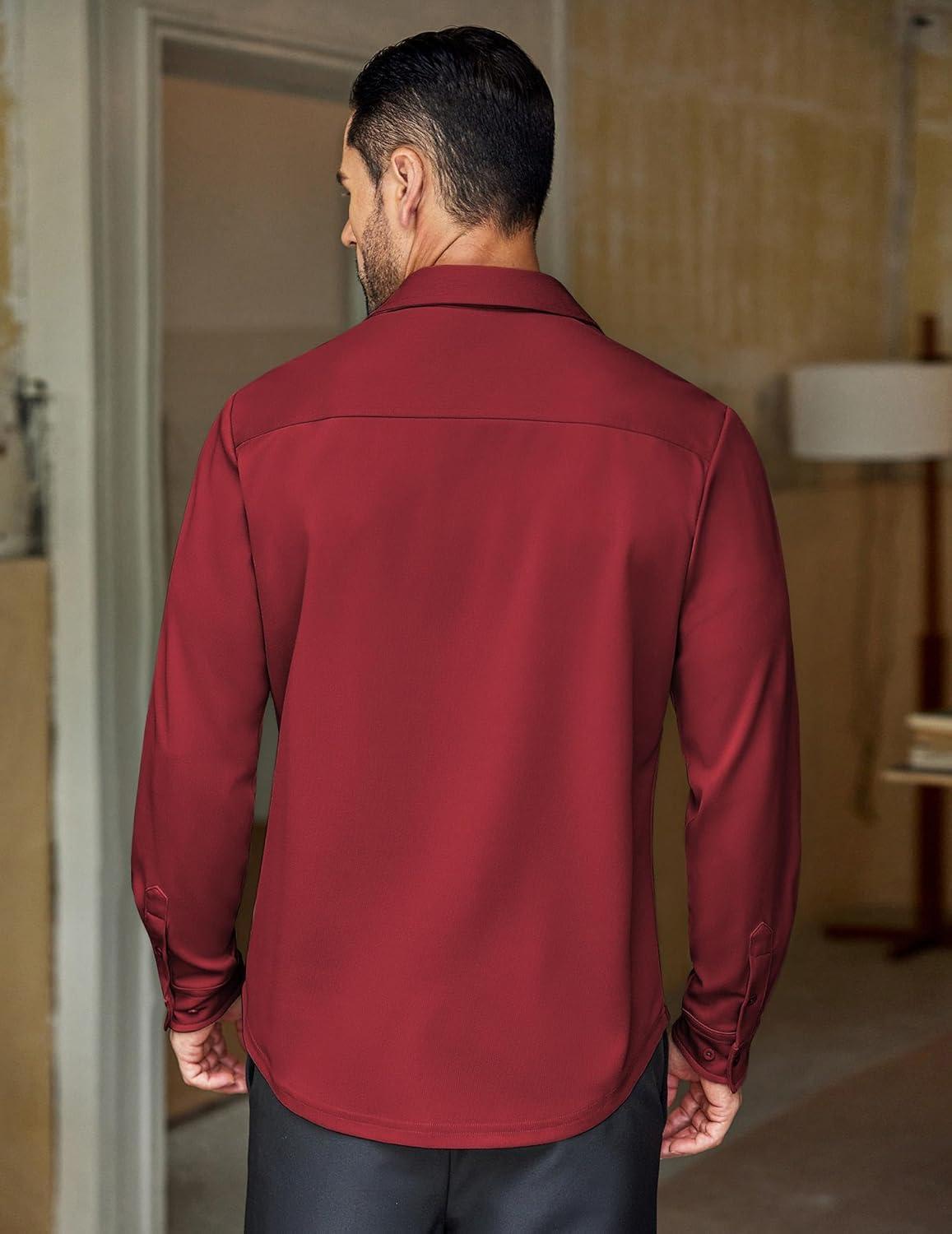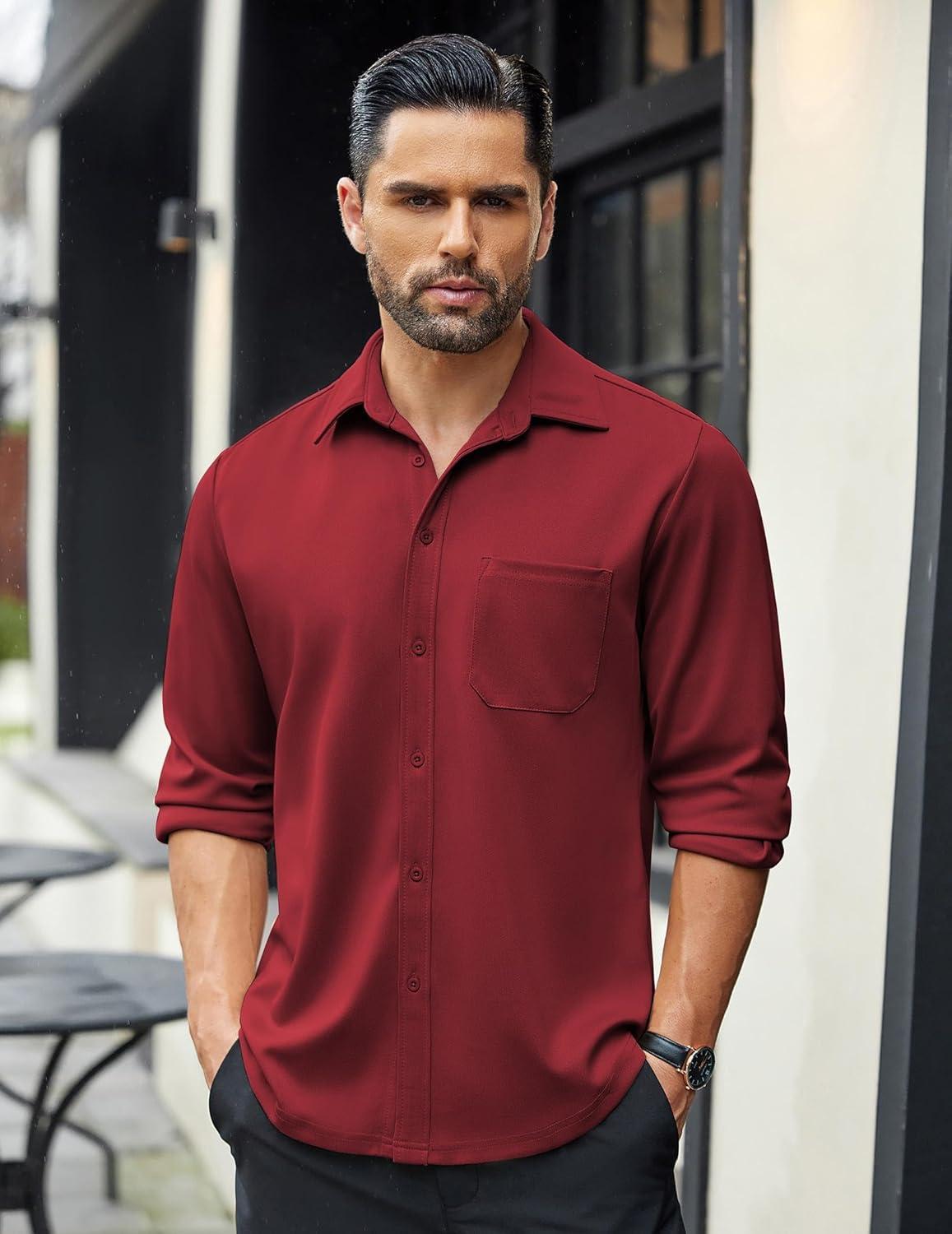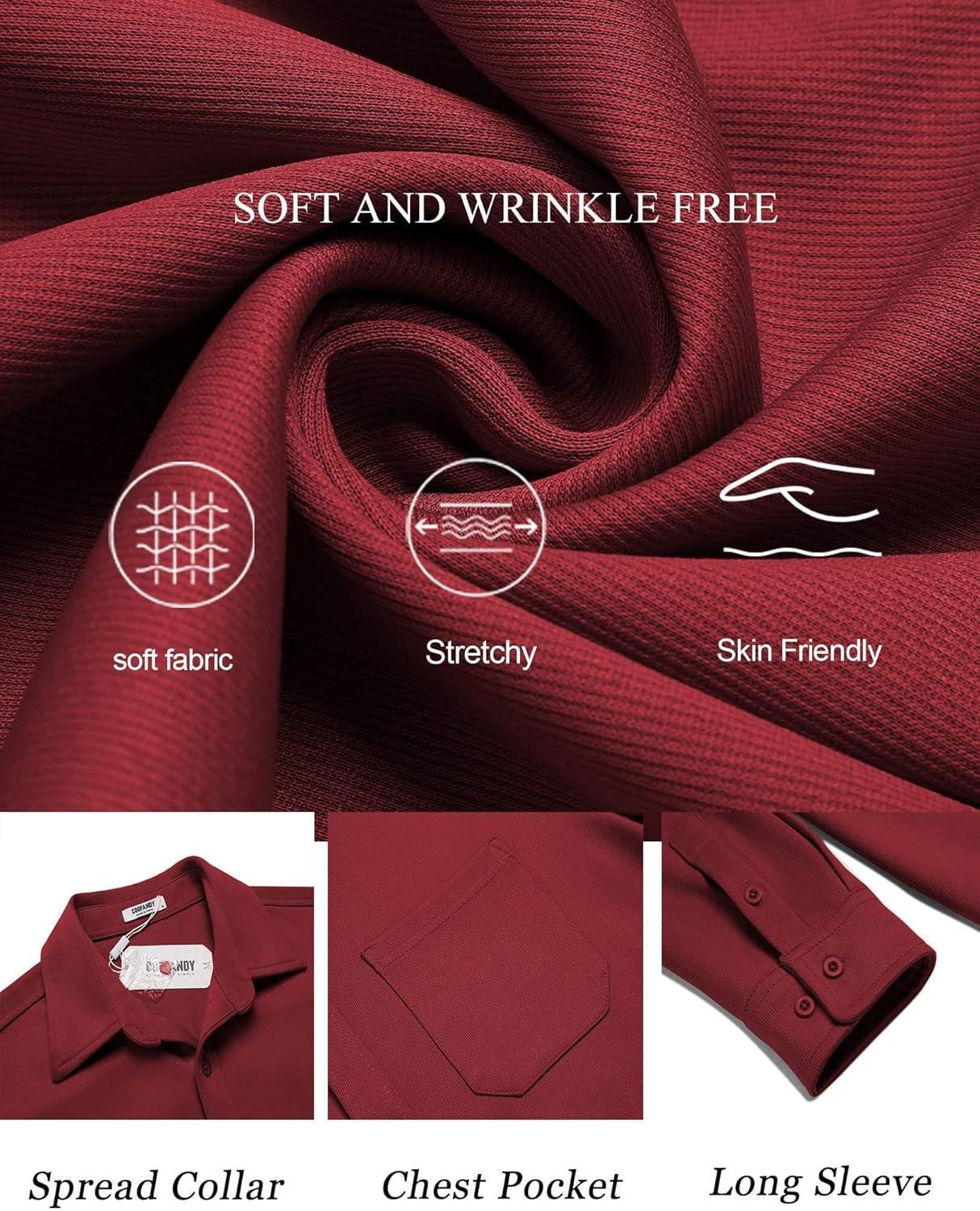 COOFANDY Mens Long Sleeve Casual Button Down Shirt Wrinkle Free Untucked Dress Shirts(Maroon)