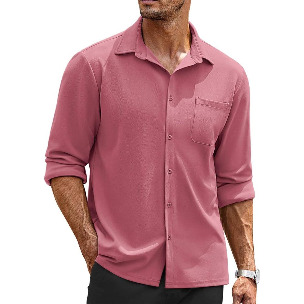 COOFANDY Mens Long Sleeve Button Down Shirts Wrinkle Free Untucked Shirts Casual Dress Shirt for Men(Pink)