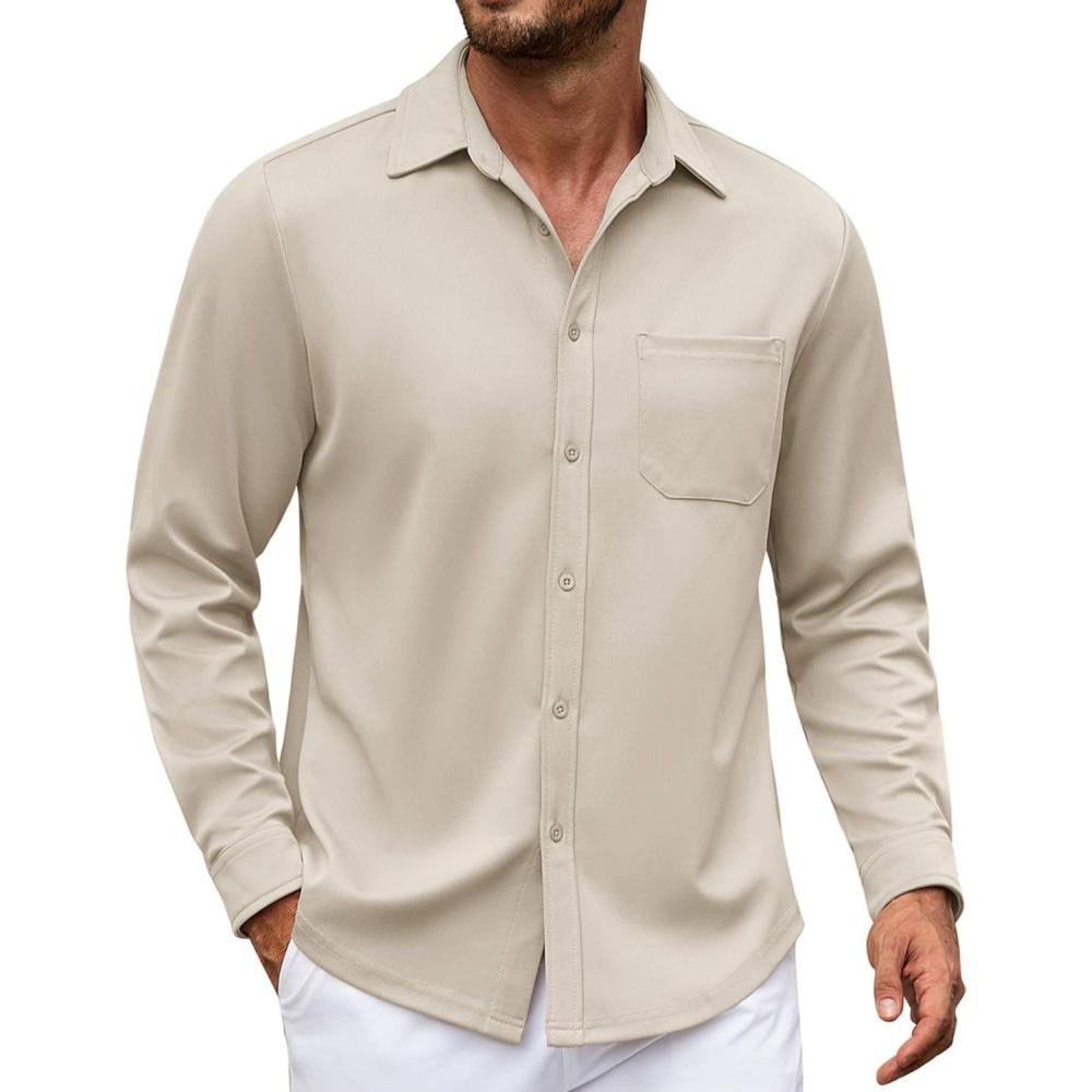 COOFANDY Mens Long Sleeve Casual Button Down Shirt Wrinkle Free Untucked Dress Shirts(Beige)
