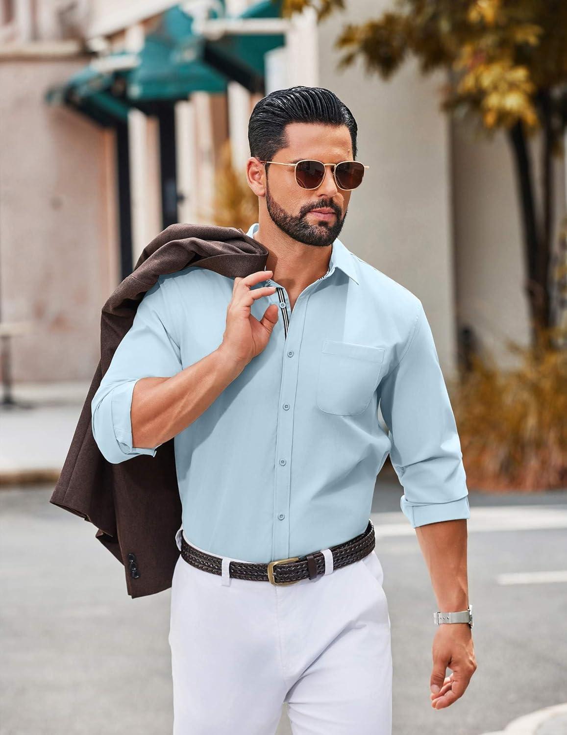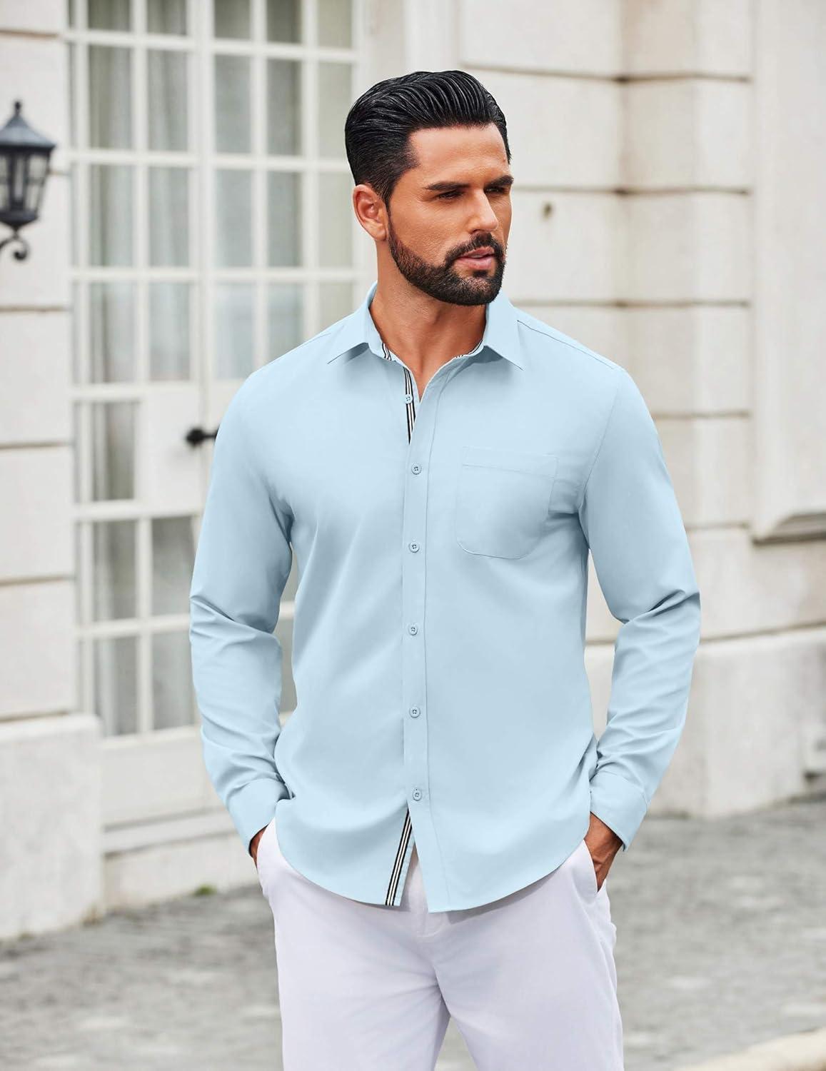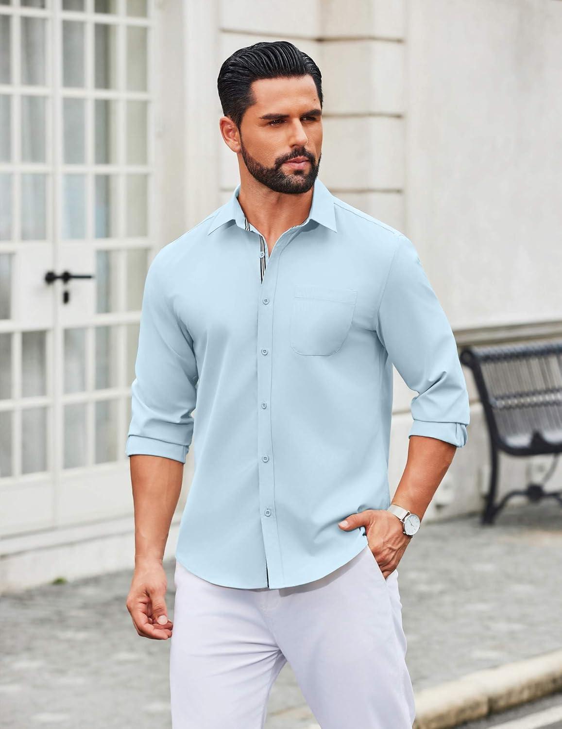 COOFANDY Men’s Long Sleeve Casual Button Down Shirts Untucked Shirts for Men Regular Fit Dress Shirt(Beau Blue)